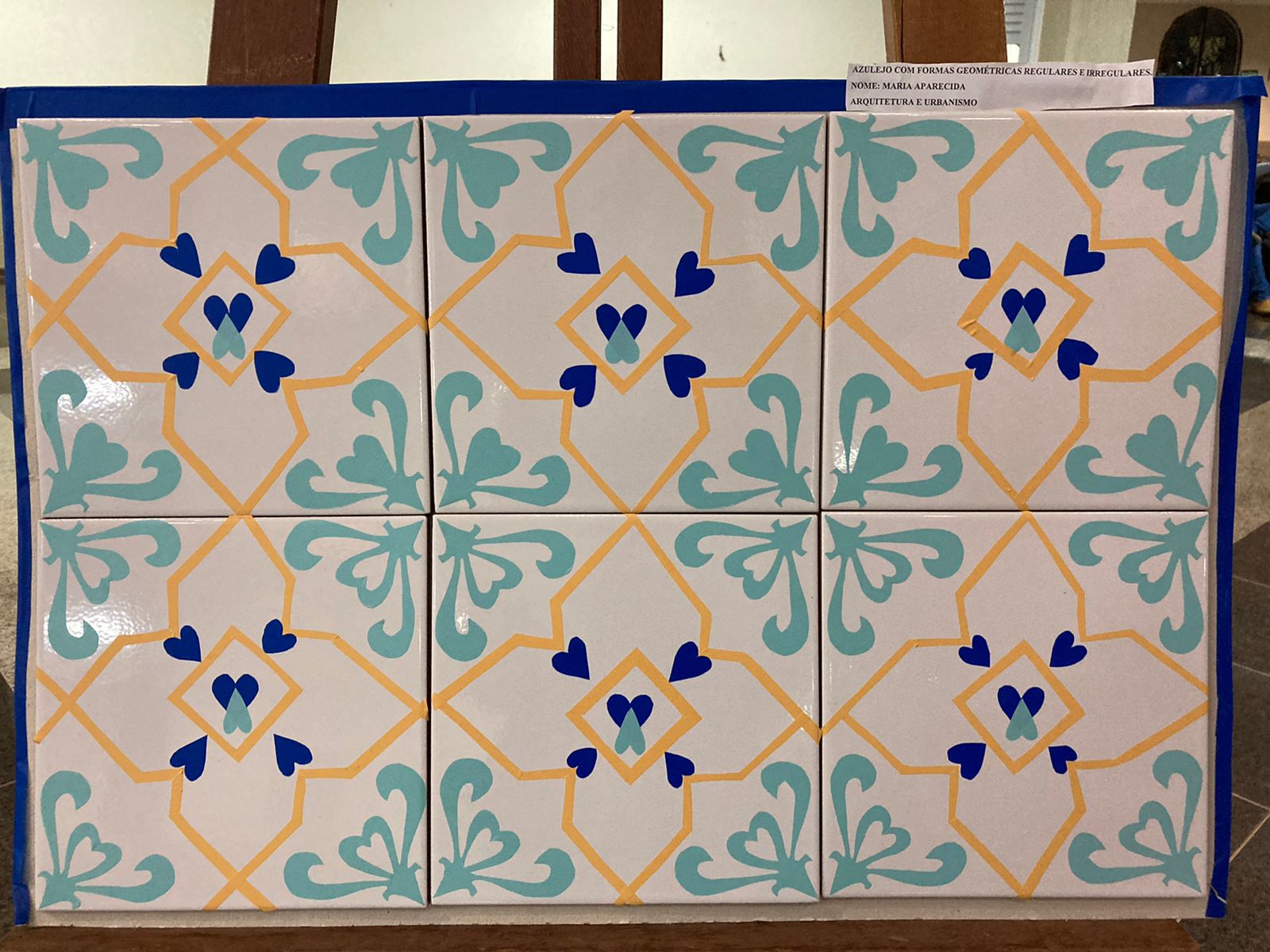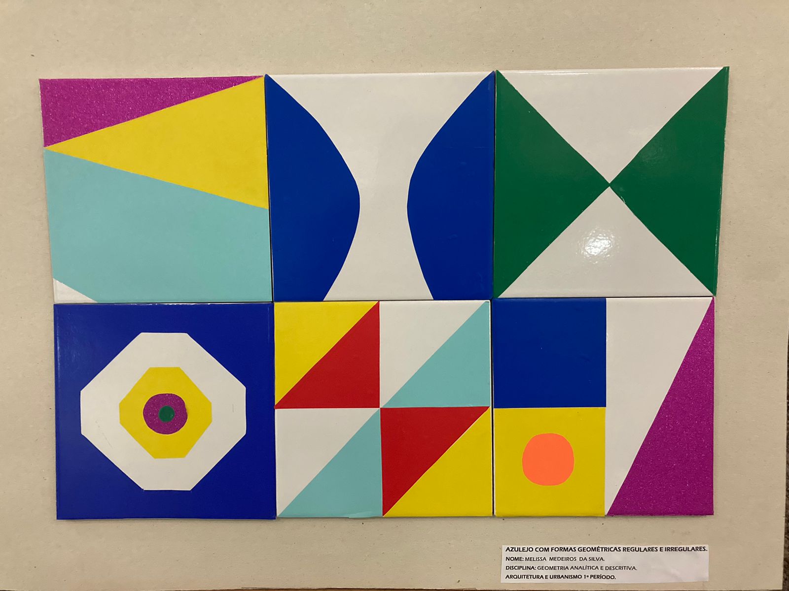 Ontem (13), os acadêmicos do 1º período do curso de Arquitetura e Urbanismo realizaram uma exposição de azulejos usando formas geométricas regulares e irregulares, trabalho acadêmico sob a orientação da Professora Carla Tames.