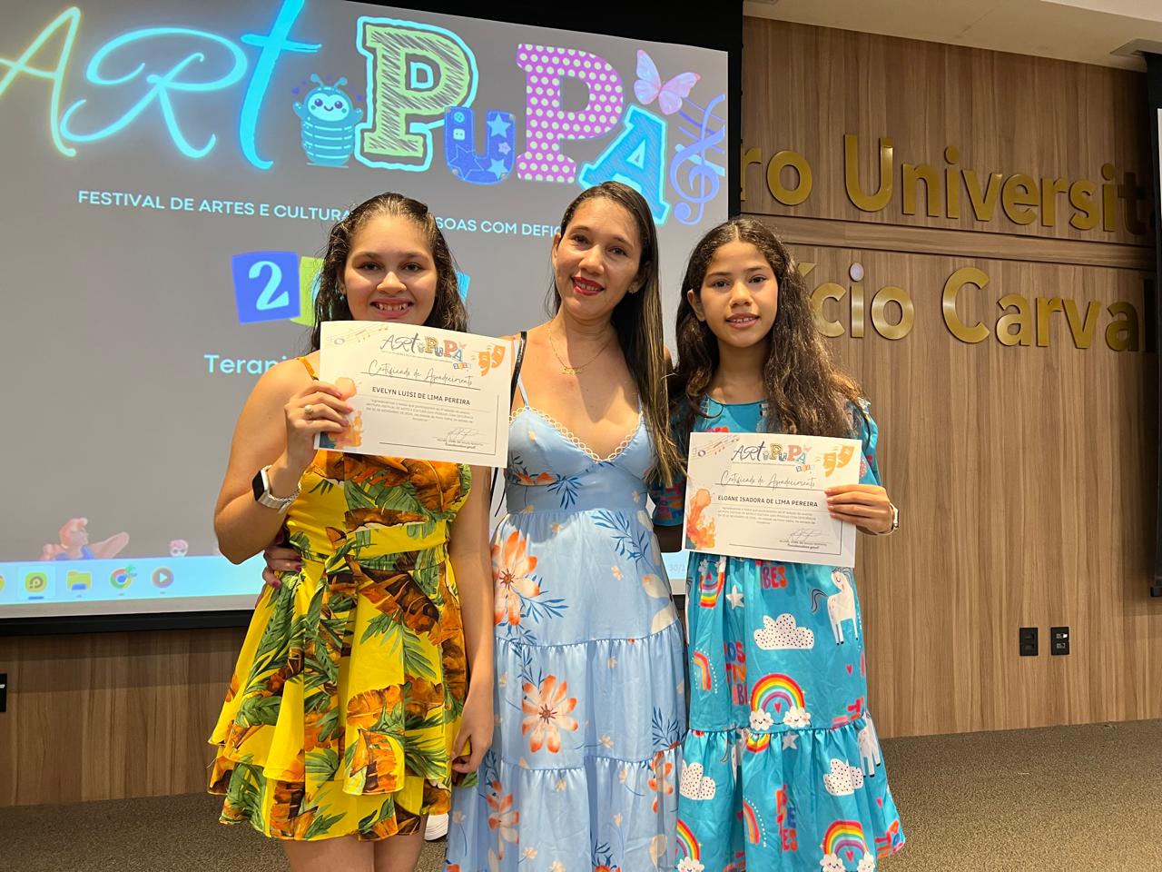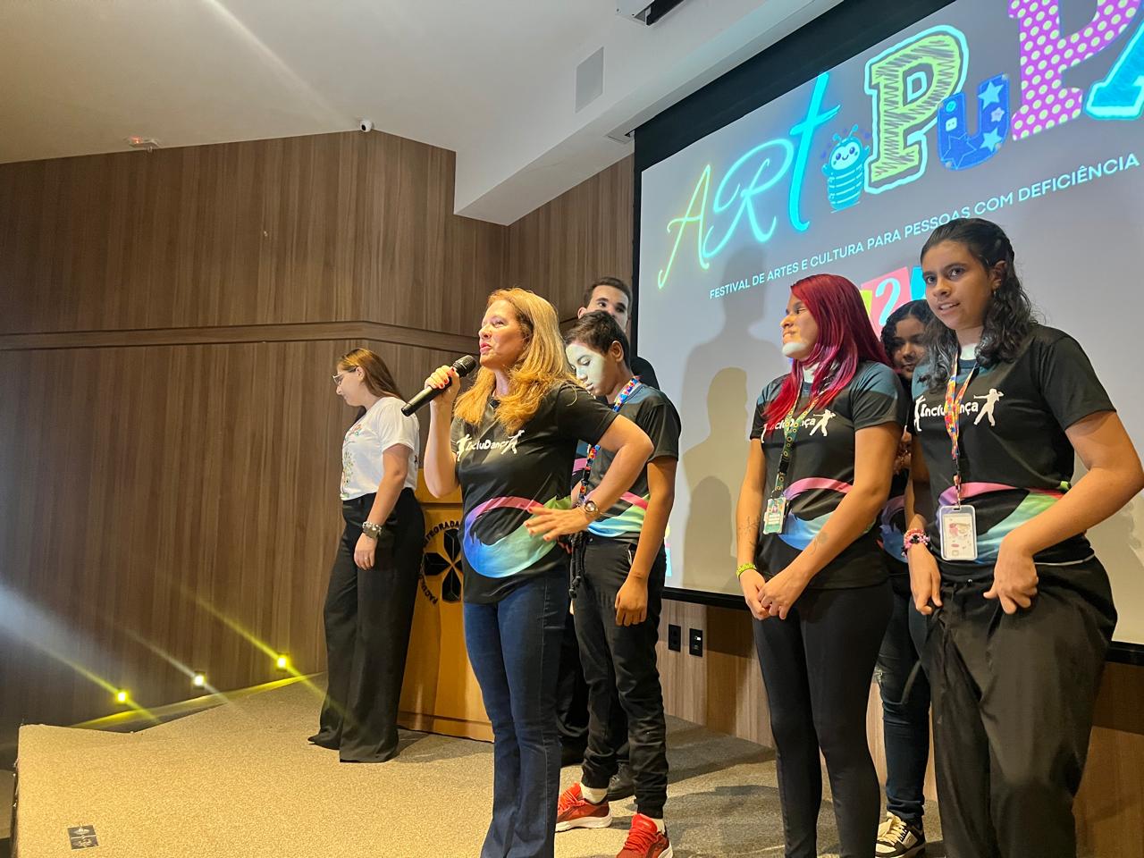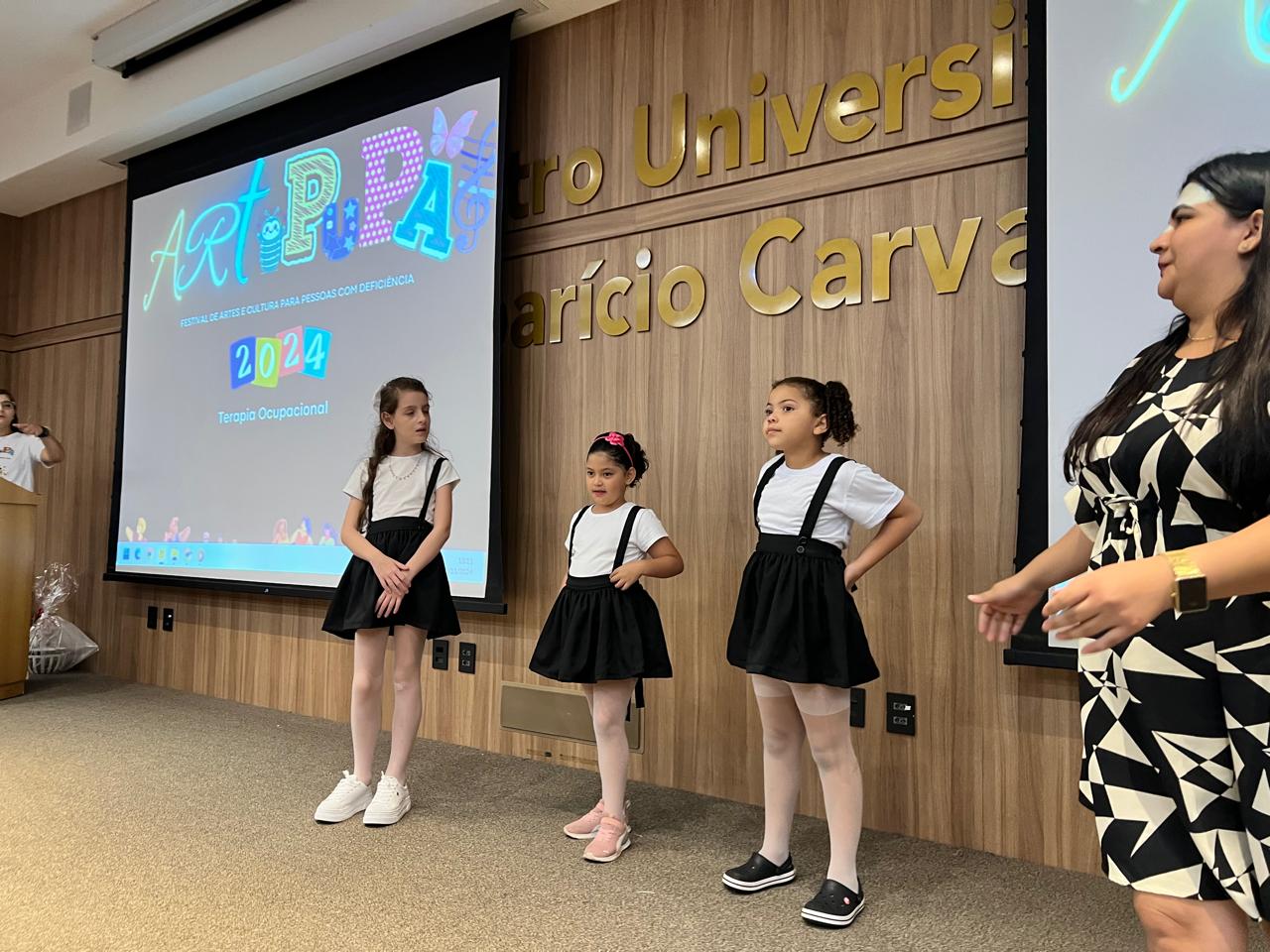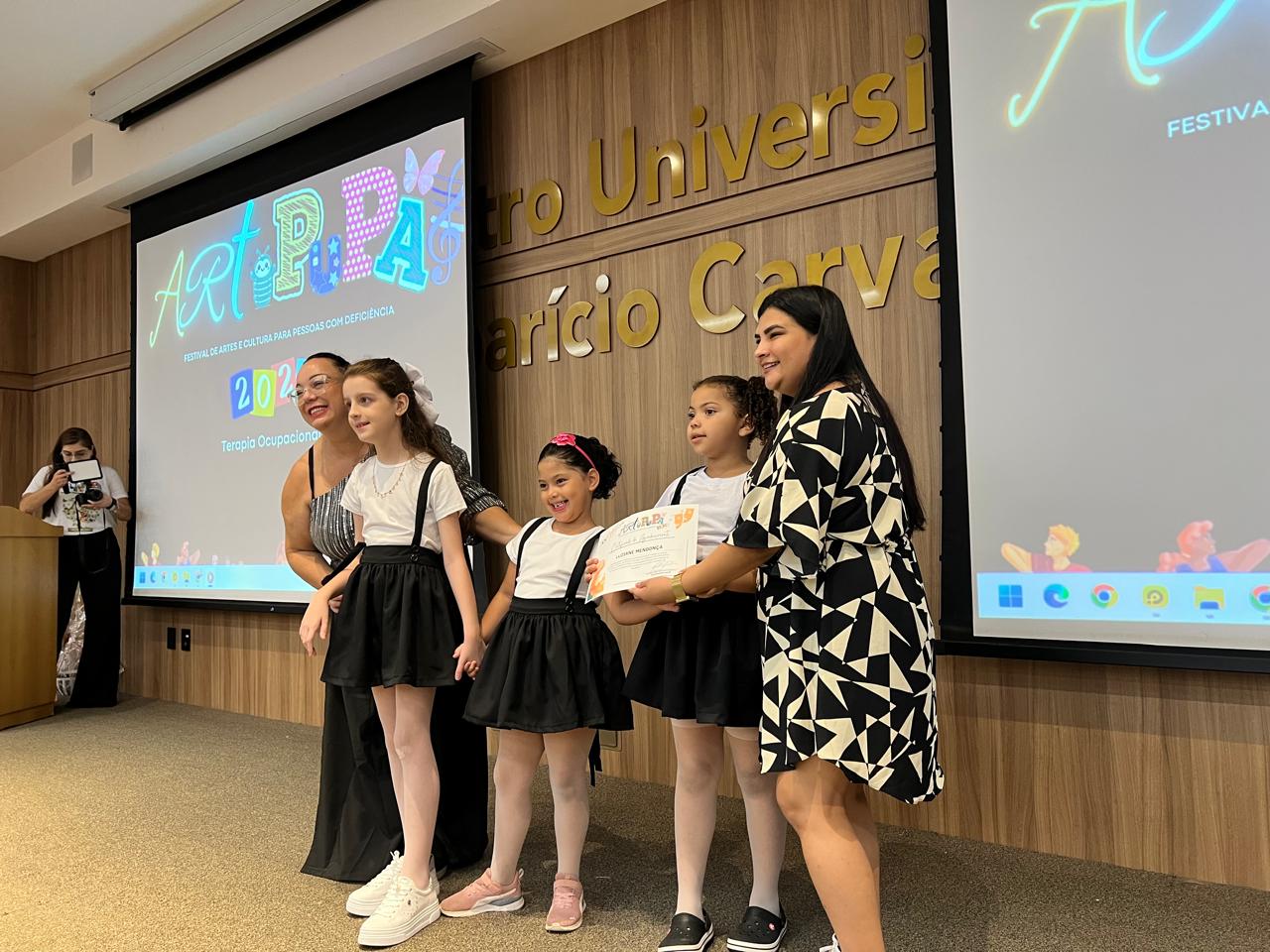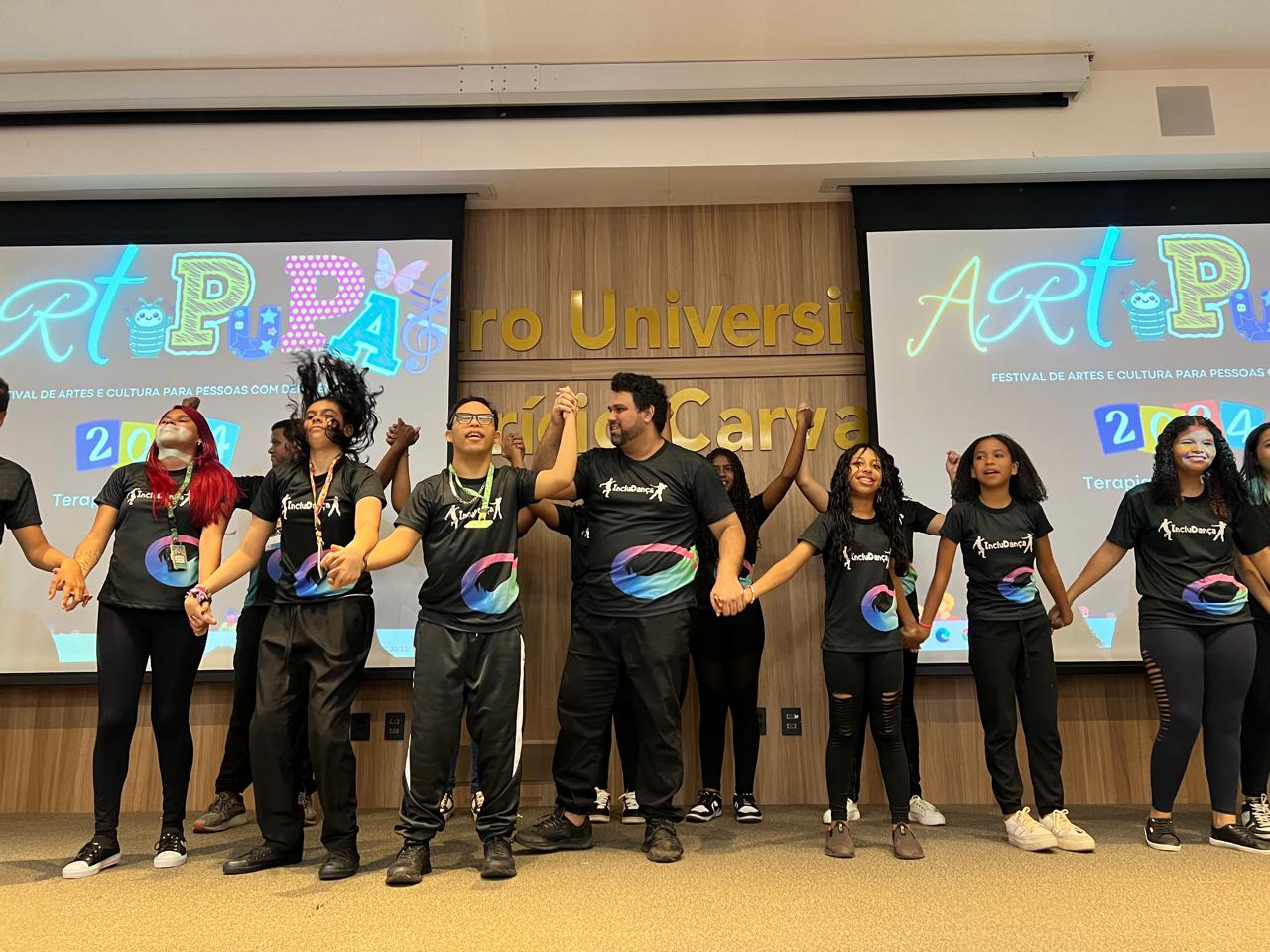 O anfiteatro do Centro Universitário Aparício Carvalho – FIMCA recebeu, no último sábado (30/11), o ArtPupa Festival de Artes e Cultura para Pessoas com Deficiência. O evento, realizado em parceria com o projeto ArtPupa e os acadêmicos do 3º período de Terapia Ocupacional, destacou-se pelas apresentações artísticas protagonizadas por pessoas com deficiência, evidenciando suas habilidades e reforçando o papel da arte como ferramenta de inclusão e expressão.