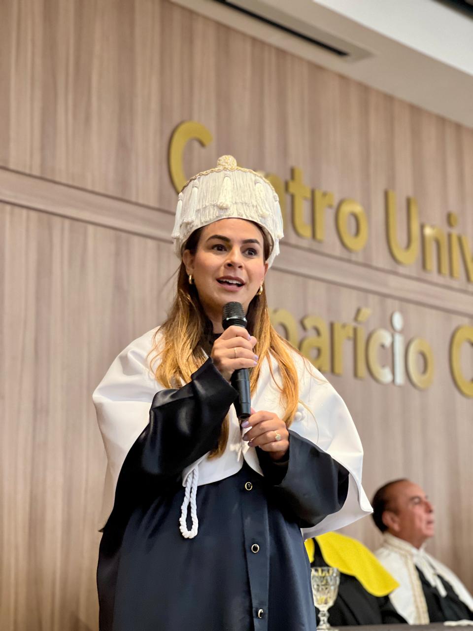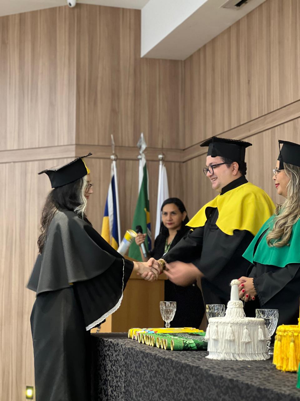 Já a Magnífica Reitora, Dra. Mariana Carvalho, reforçou a missão da FIMCA na formação de profissionais qualificados e comprometidos com o bem-estar coletivo. “Hoje é um dia de celebração, mas também de reflexão sobre a responsabilidade que cada um de vocês carrega a partir de agora. A FIMCA tem orgulho de contribuir para a formação de profissionais que farão a diferença na vida das pessoas. Sigam com determinação, empatia e a certeza de que o aprendizado nunca acaba”, declarou.