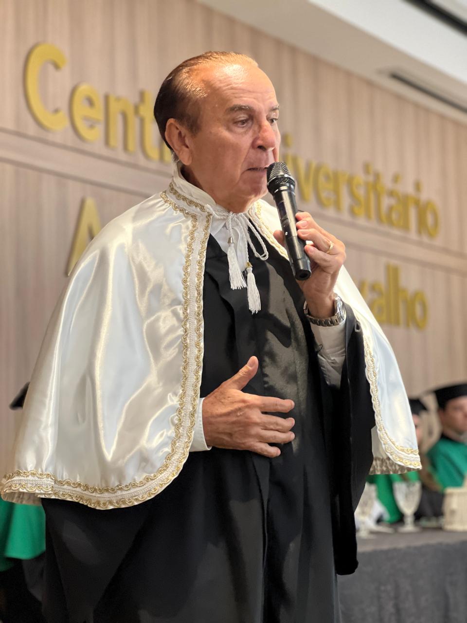 Durante a cerimônia, Dr. Aparício Carvalho destacou a importância dos novos profissionais para a sociedade e o impacto positivo que terão em suas áreas de atuação. “Cada um de vocês escolheu uma profissão que tem o poder de transformar vidas. A saúde é um dos pilares mais essenciais da sociedade, e a responsabilidade que agora assumem exige dedicação, compromisso e humanidade. Tenho plena certeza de que sairão daqui preparados para enfrentar os desafios do mundo profissional com competência e ética”, afirmou o Reitor Emérito.