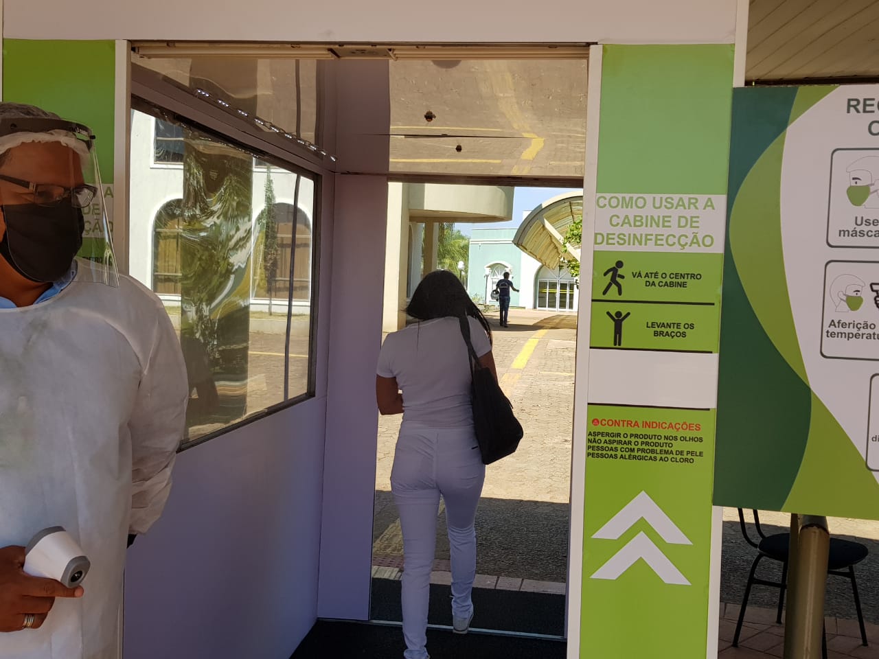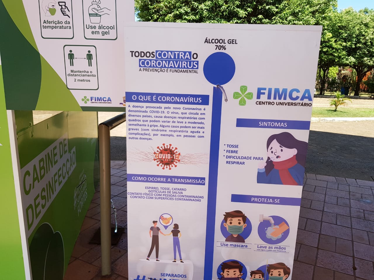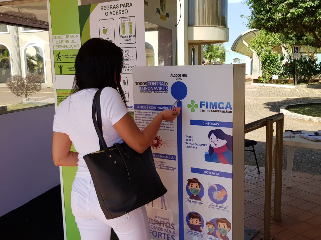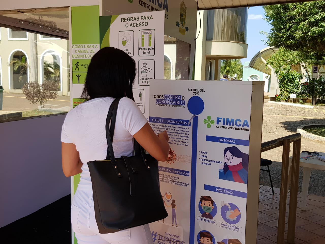 Mesmo como os números de infectados pelo novo coronavírus diminuindo na capital, os cuidados precisam continuar sendo tomados, hoje todas as pessoas que chegam no Centro Universitário Aparício Carvalho – FIMCA tem sua temperatura medida logo na chegada, o uso do álcool em gel é feito nas mãos e o uso de mascará é obrigatório, todos também passam por uma cabine de desinfecção.