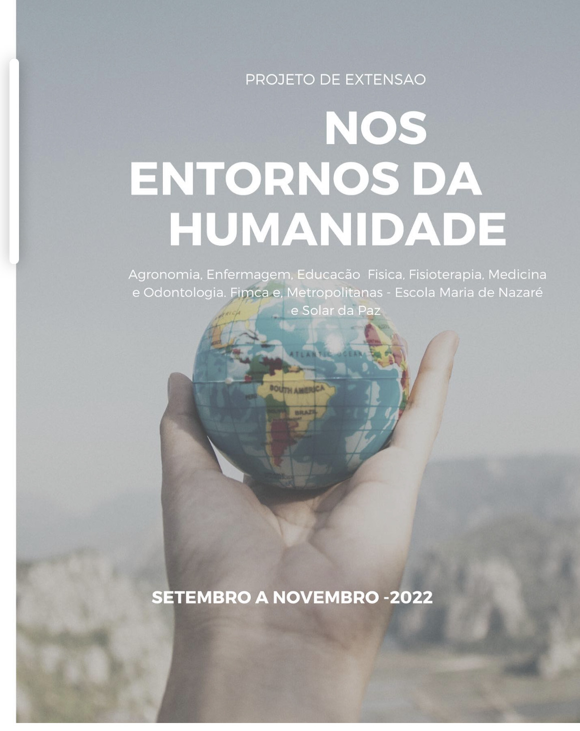 Segundo o professor Gilmar Nascimento, a extensão universitária é um dos pilares do ensino superior e possibilita que o conhecimento adquirido no Centro Universitário Aparício Carvalho e na Faculdade Metropolitana seja compartilhado com a sociedade. Afirmou ainda que esse propósito, o projeto de extensão “Nos Entornos da Humanidade”, se apresenta como uma ponte entre os acadêmicos e a sociedade.