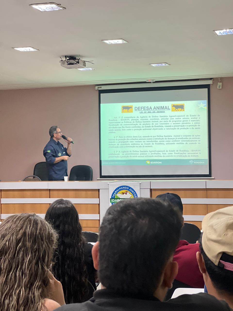 Na última terça-feira, 24 de setembro, o auditório da Faculdade Metropolitana foi palco da cerimônia de abertura do Projeto Educativo Estadual de Formação Continuada, que tem como objetivo capacitar acadêmicos e profissionais na área de defesa agropecuária. O projeto é uma iniciativa conjunta do Centro Universitário Aparício Carvalho – FIMCA e da Agência de Defesa Sanitária Agrosilvopastoril do Estado de Rondônia (IDARON), contando com a participação de alunos do 6º ao 9º período dos cursos de Agronomia e Medicina Veterinária.