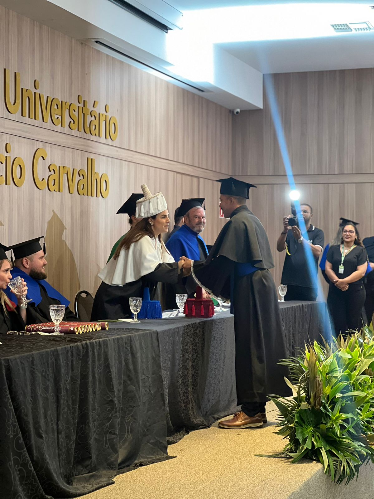 Na noite desta quinta-feira, 29 de fevereiro, os formandos dos cursos de Engenharia Elétrica, Engenharia Mecânica, Engenharia de Produção, Arquitetura e Urbanismo e Odontologia do Centro Universitário Aparício Carvalho – FIMCA e da Faculdade Metropolitana de Rondônia reuniram-se para celebrar a cerimônia de colação de grau, na terceira noite de solenidades presididas pela Magnífica Reitora Dra. Mariana Carvalho.