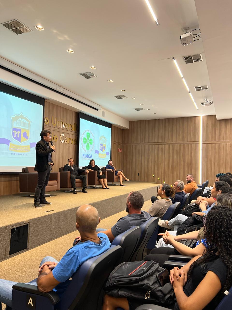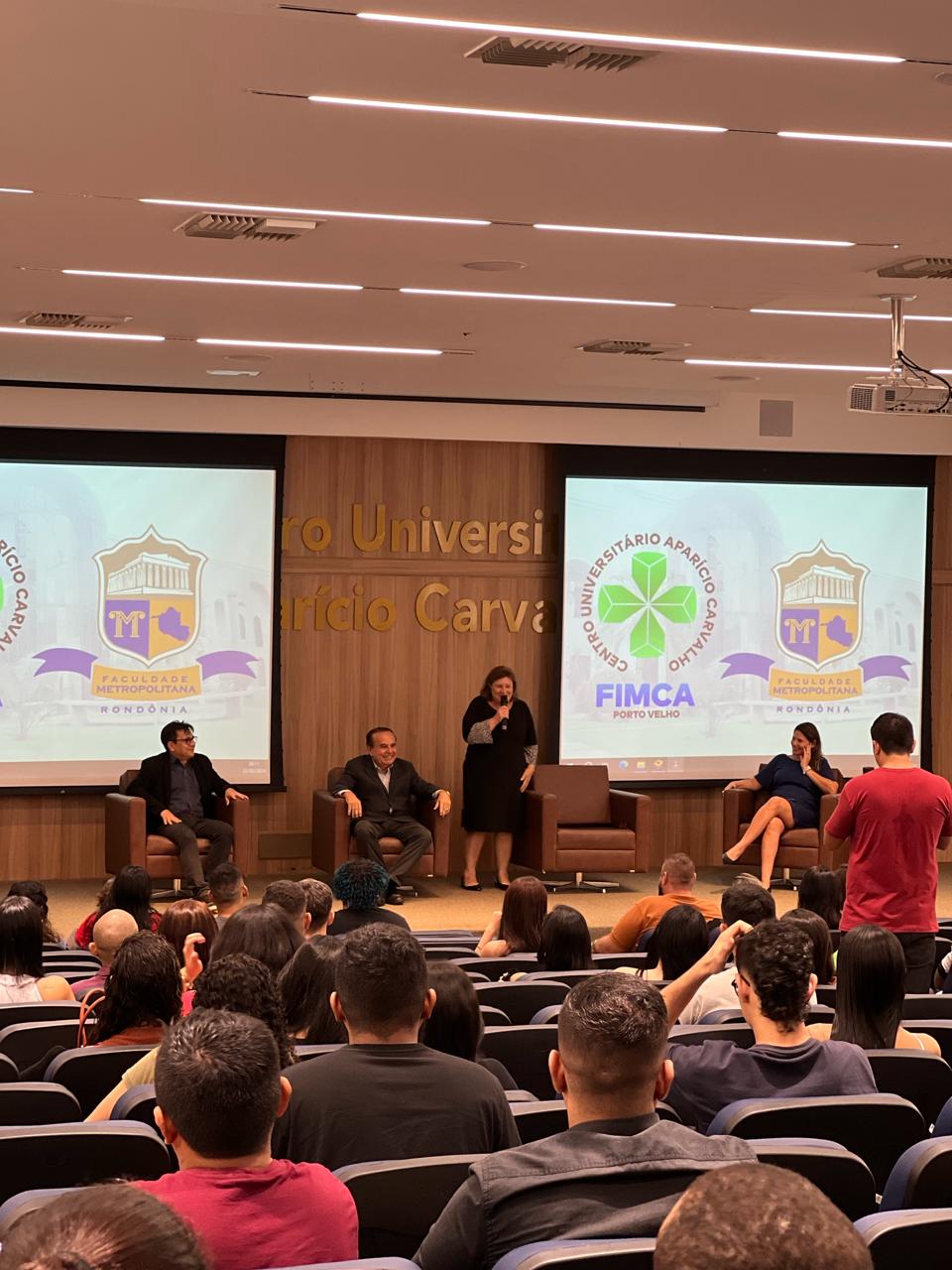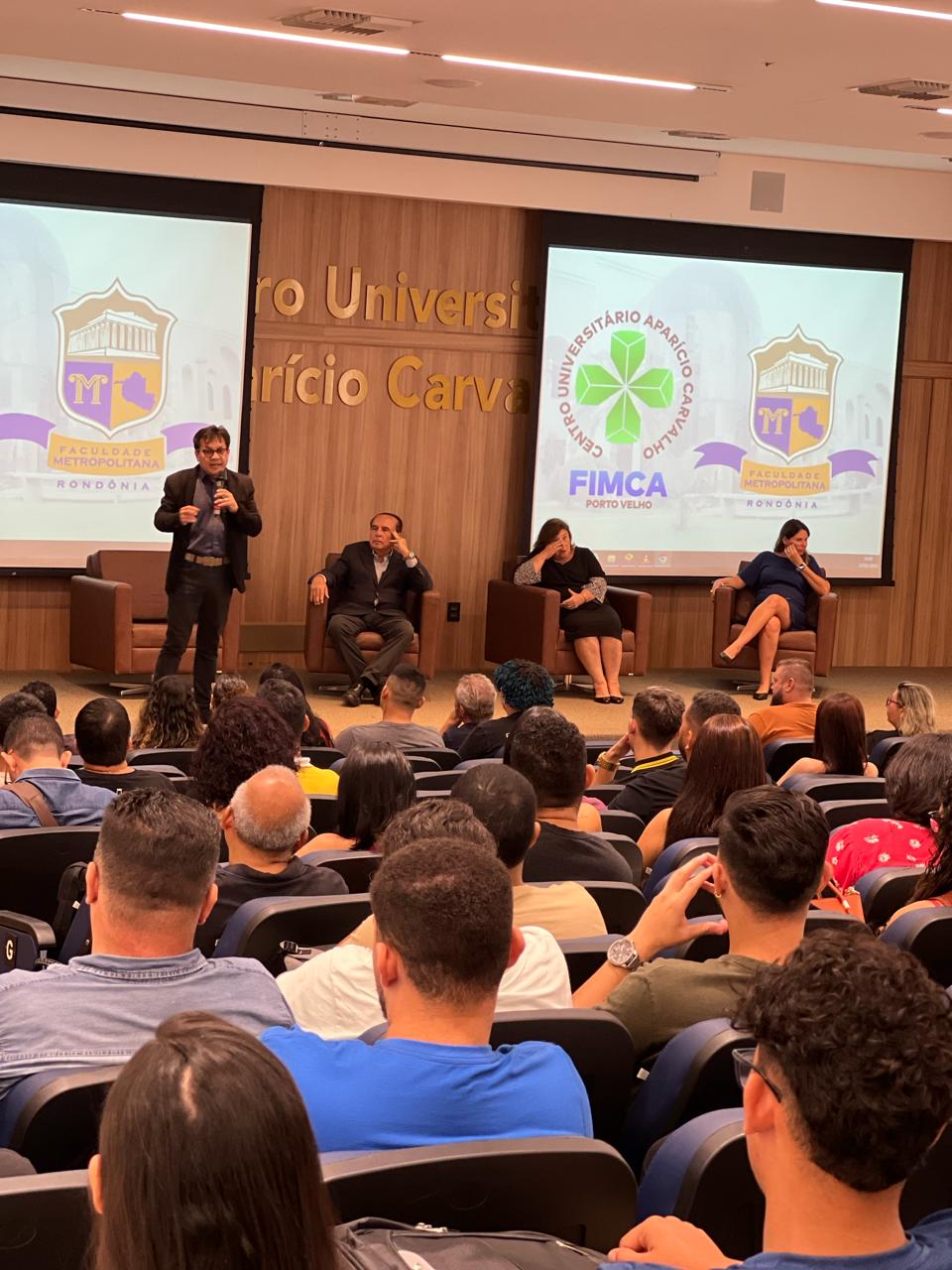 Nesta quinta-feira, 22 de fevereiro, o Centro Universitário Aparício Carvalho – FIMCA e Faculdade Metropolitana de Rondônia realizaram no Anfiteatro Dra. Maria Silvia Fonseca Carvalho a recepção dos novos acadêmicos dos cursos de Arquitetura e Urbanismo, Engenharia Civil, Engenharia Mecânica, Nutrição e Música.