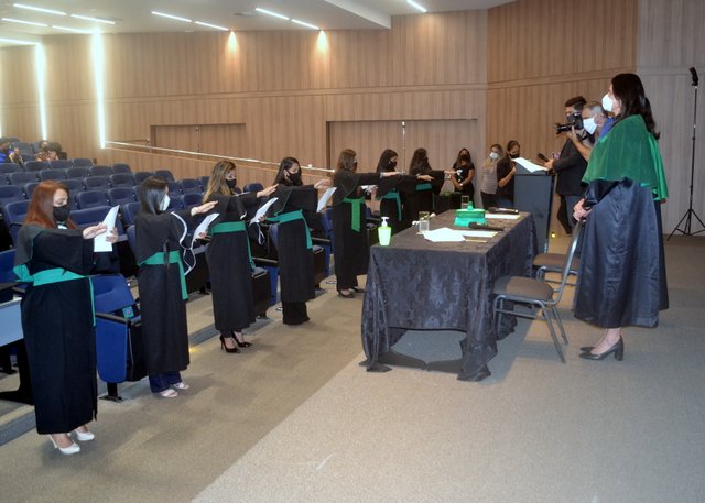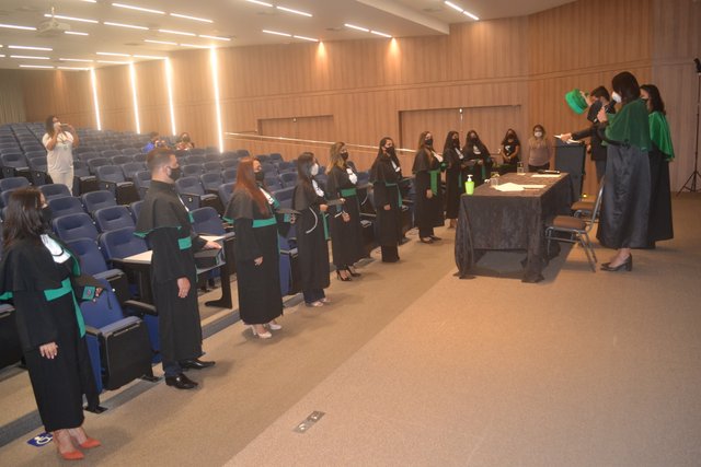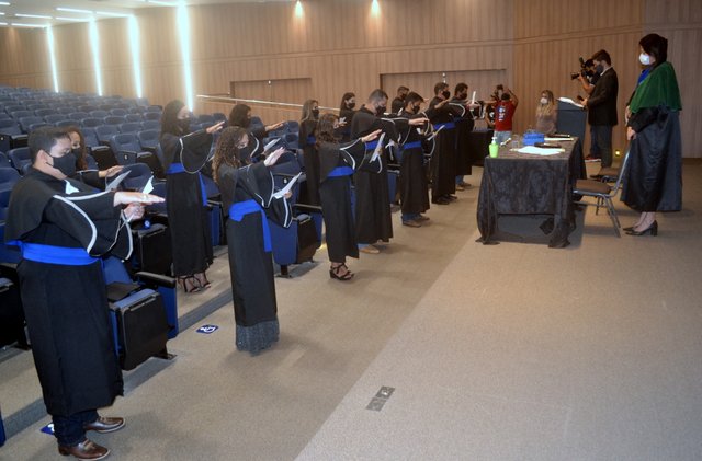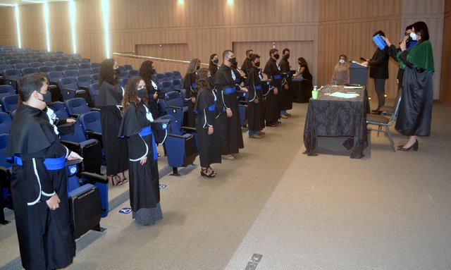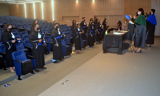 A cerimônia foi presidida pela Diretora Acadêmica Dra. Nelice Batistelli, acompanhada das professoras Amanda Leite, coordenadora de Fonoaudiologia e Bárbara dos Santos, coordenadora de Agronomia, em conformidade com os protocolos de segurança, orientações e recomendações da Organização Mundial da Saúde (OMS), bem como o Decreto do Estado de Rondônia nº 25.291, de 13 de agosto de 2020.