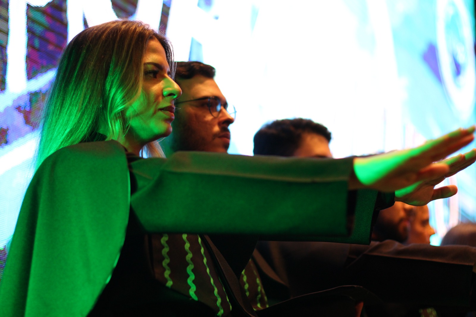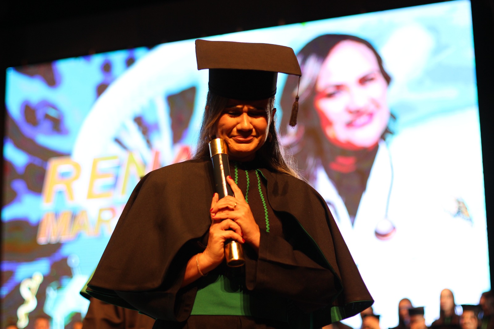 Já a coordenadora do curso de Medicina, Dra. Vanessa Ferraz, que esteve lado a lado com os estudantes ao longo de toda a graduação, também se emocionou ao falar sobre o crescimento técnico e humano da turma.