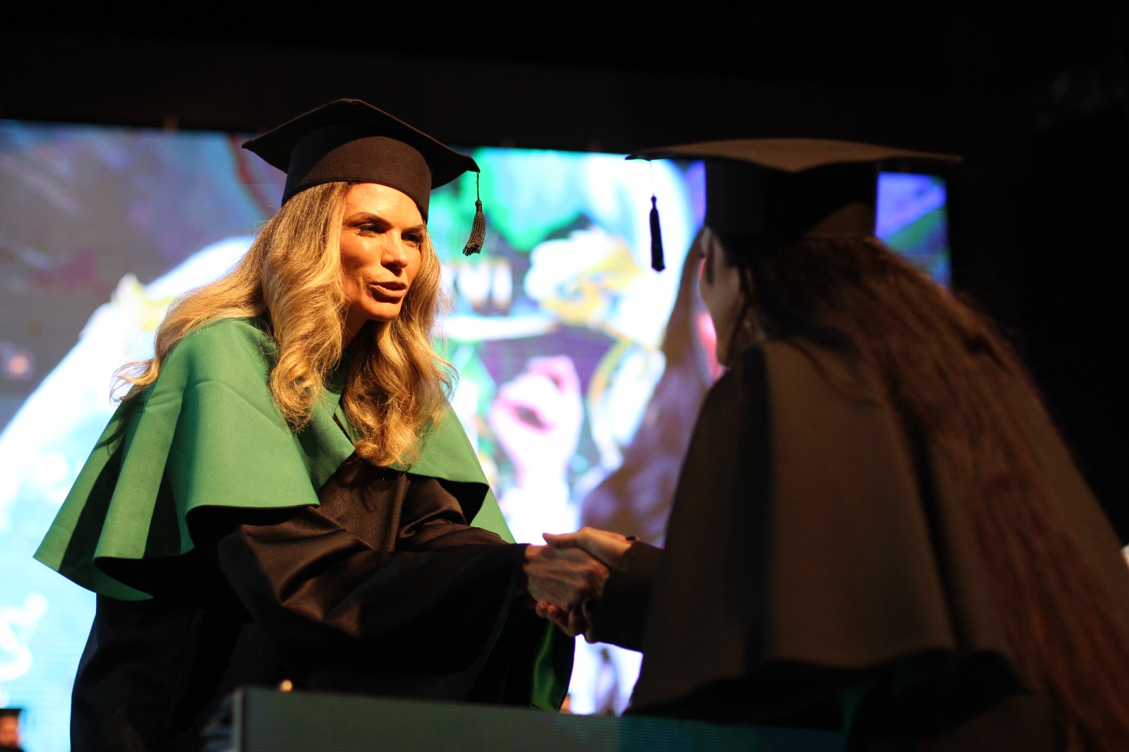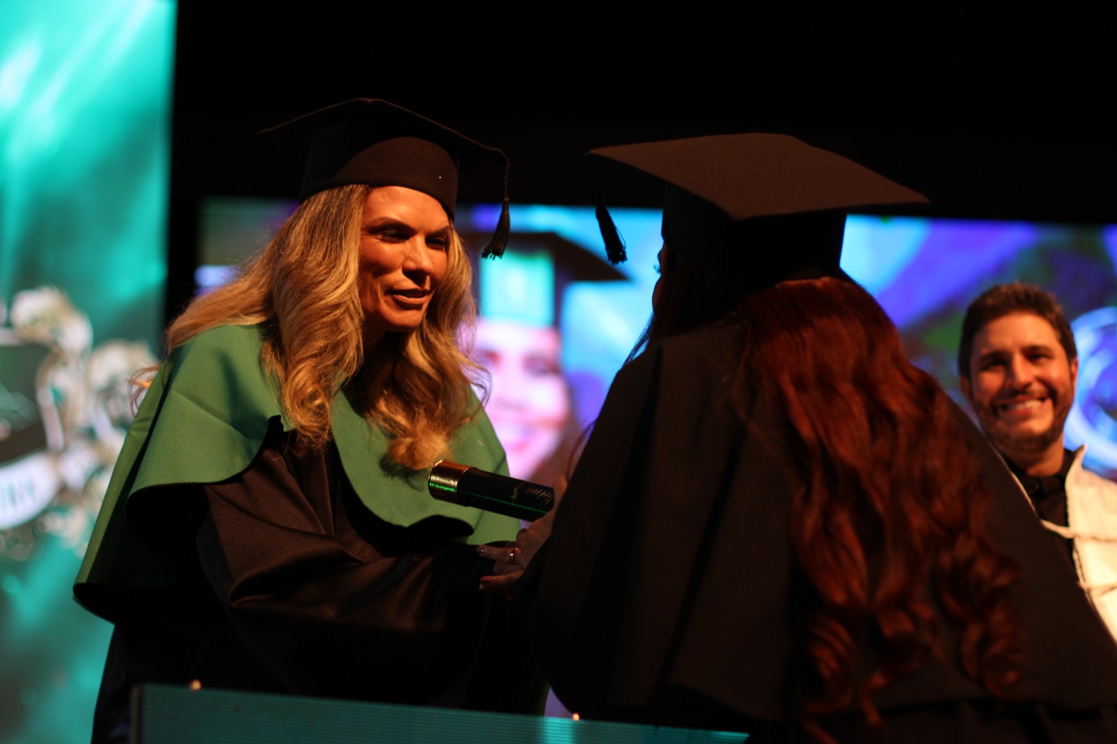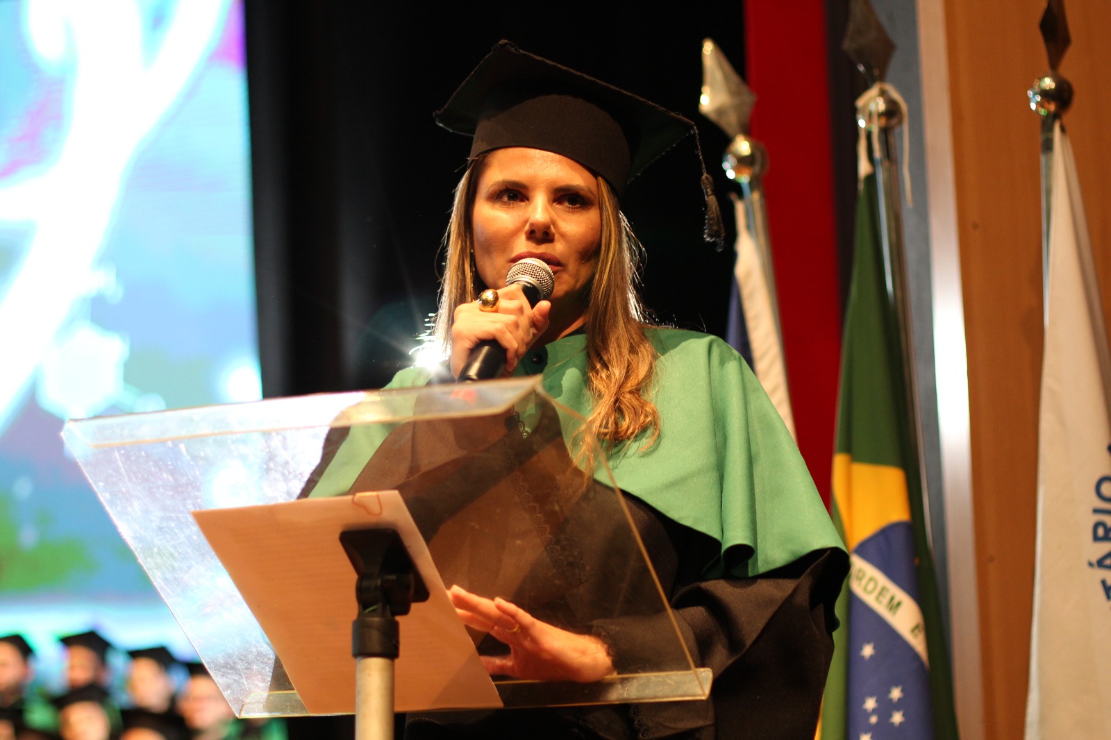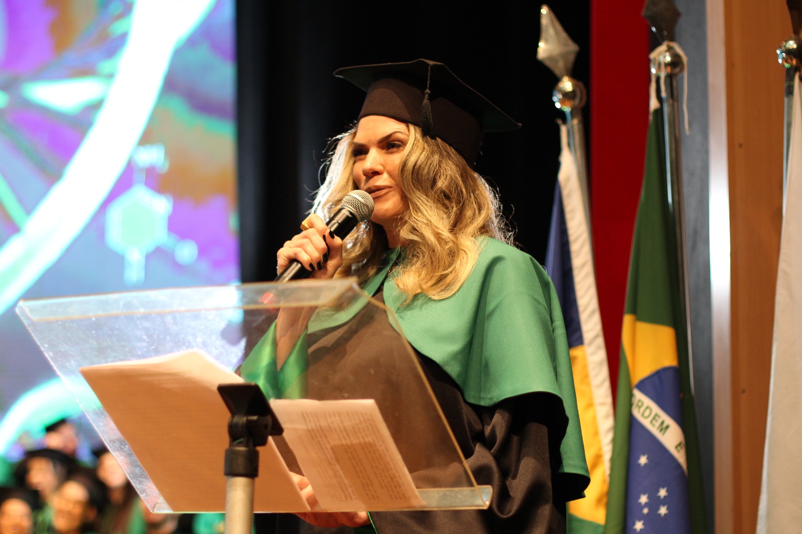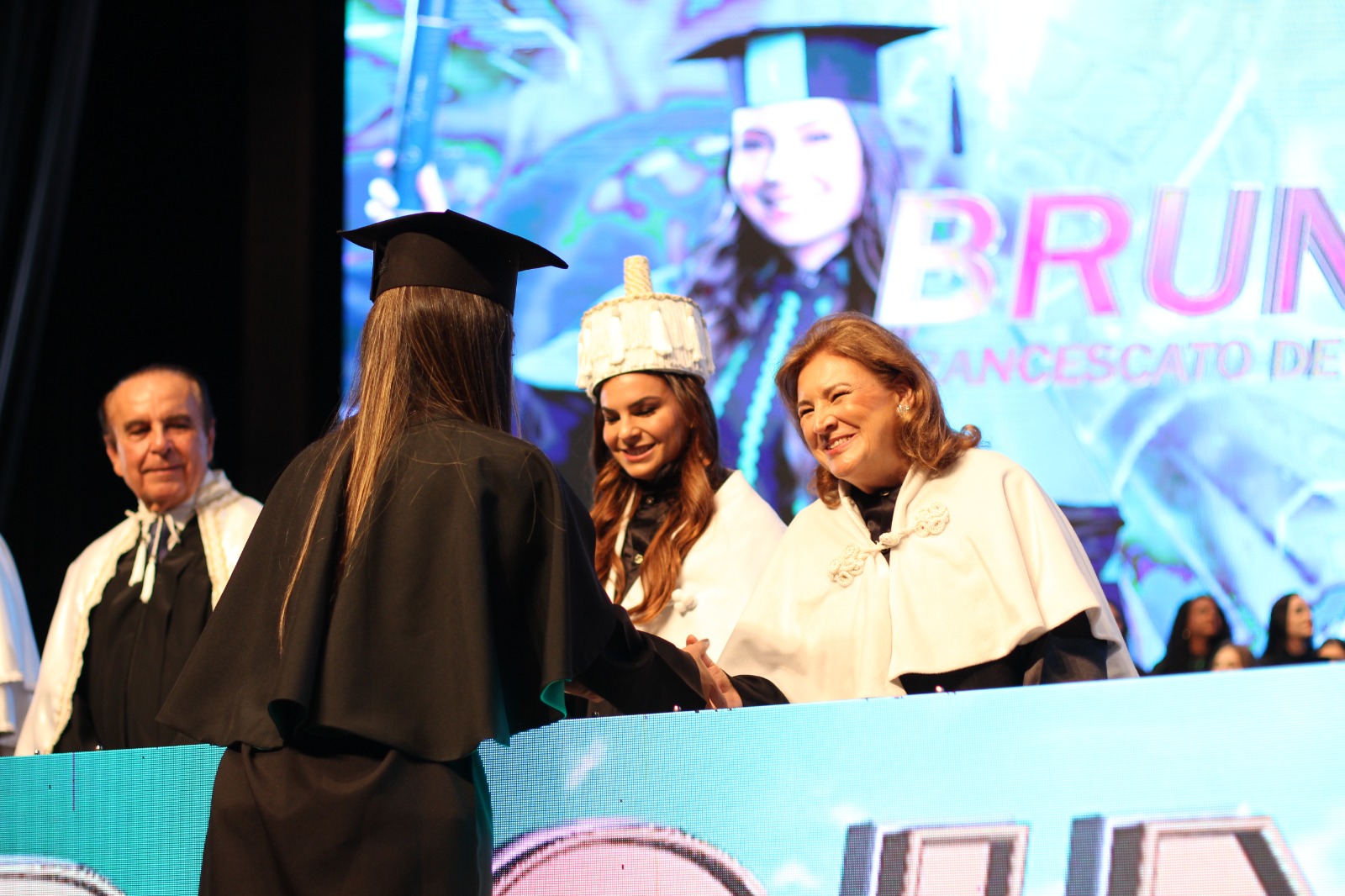 A Reitora Emérita, Dra. Maria Silvia Fonseca Ribeiro Carvalho de Moraes, reforçou o orgulho da instituição pelos formandos, reconhecendo o esforço e a determinação de cada um.