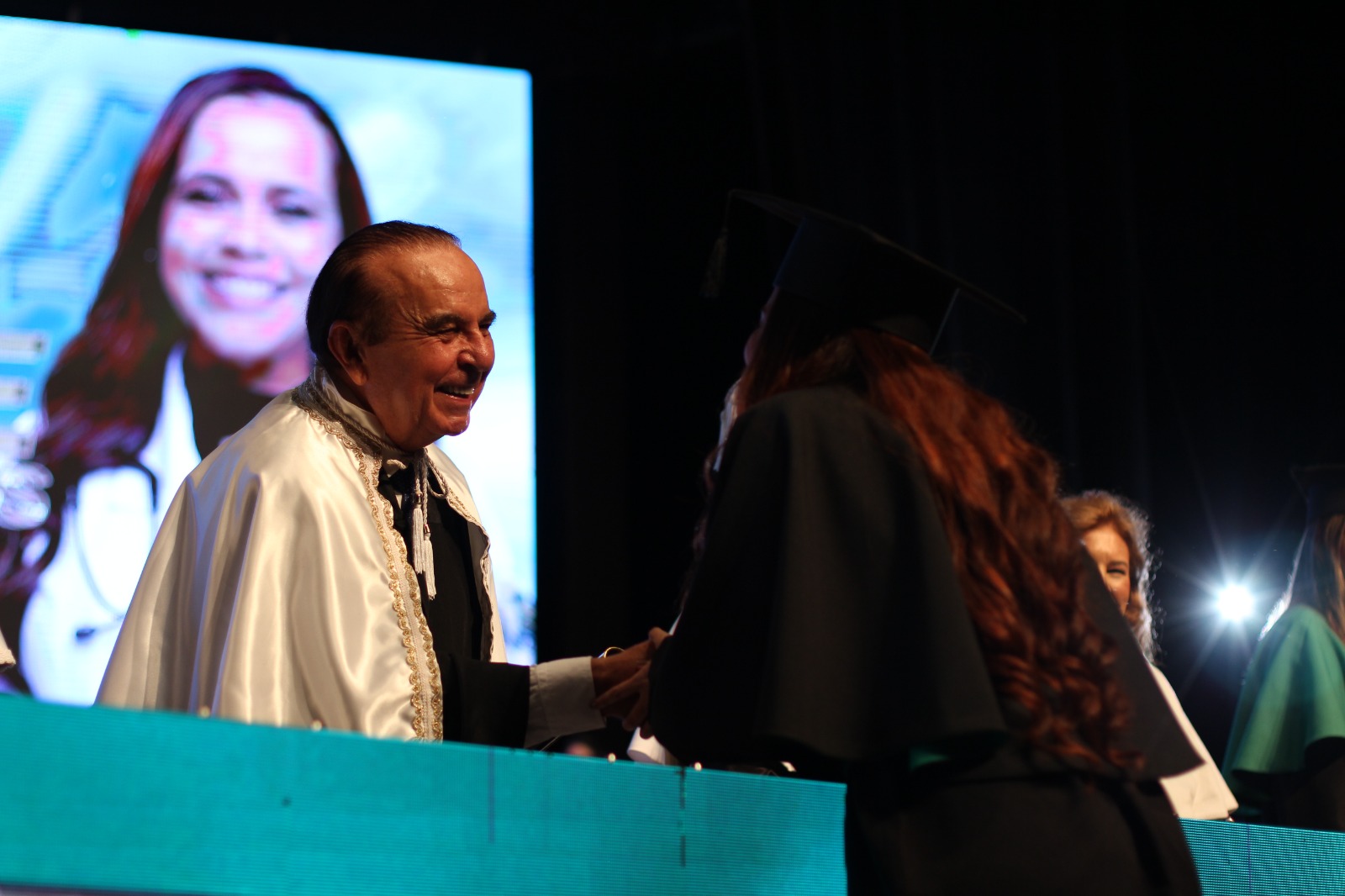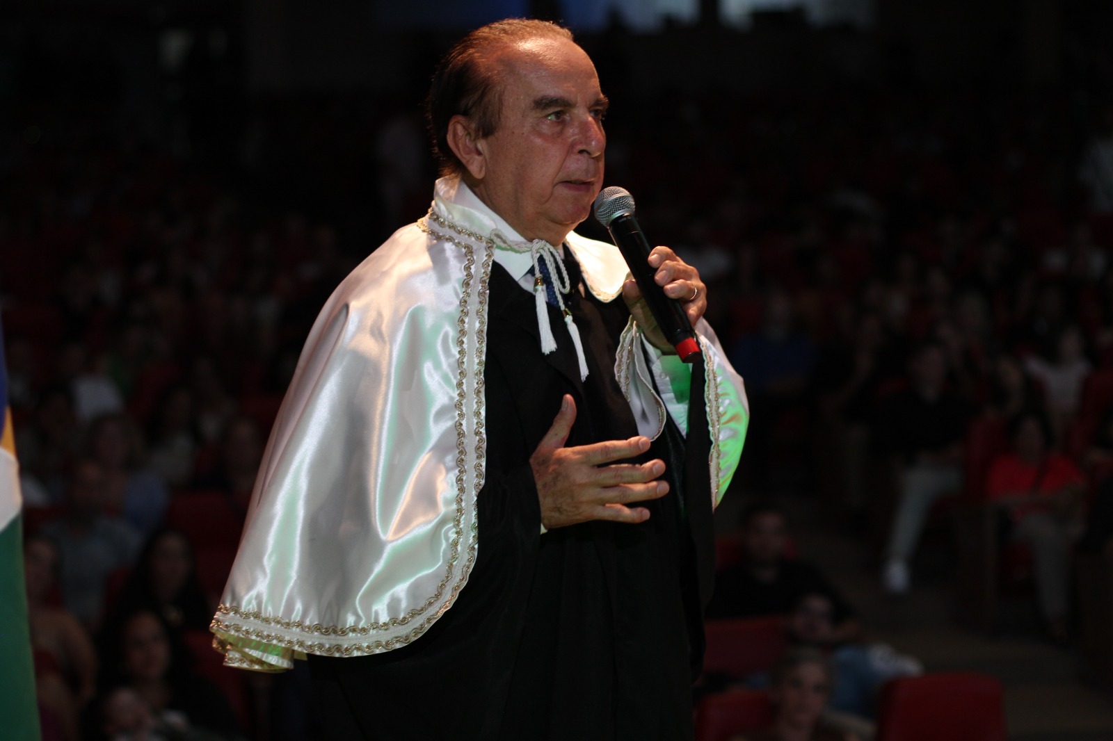 O Reitor Emérito, Dr. Aparício Carvalho, fundador da instituição, relembrou a importância da jornada dos acadêmicos e do impacto que eles terão na sociedade.
