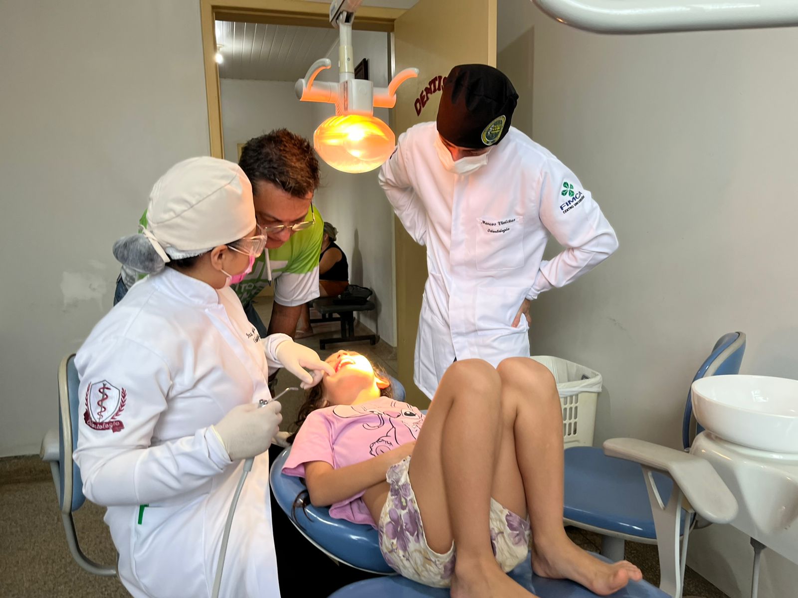 A Odontologia marcou presença com atendimentos clínicos completos, incluindo avaliações, limpeza, profilaxia, abordagens de urgência, extrações quando necessárias, realização de ART (Tratamento Restaurador Atraumático) e abertura de tratamento de canal com curativo provisório (MIC). A equipe também reforçou a importância da prevenção com orientações de higiene bucal e cuidados diários.