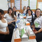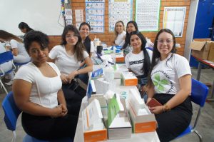 O curso de Farmácia contribuiu oferecendo aferição de glicemia e orientações sobre o uso correto de fitoterápicos, incluindo indicação de tinturas e produtos naturais que podem auxiliar no cuidado com o diabetes e outras condições, sempre reforçando a importância da orientação profissional nas práticas de saúde.