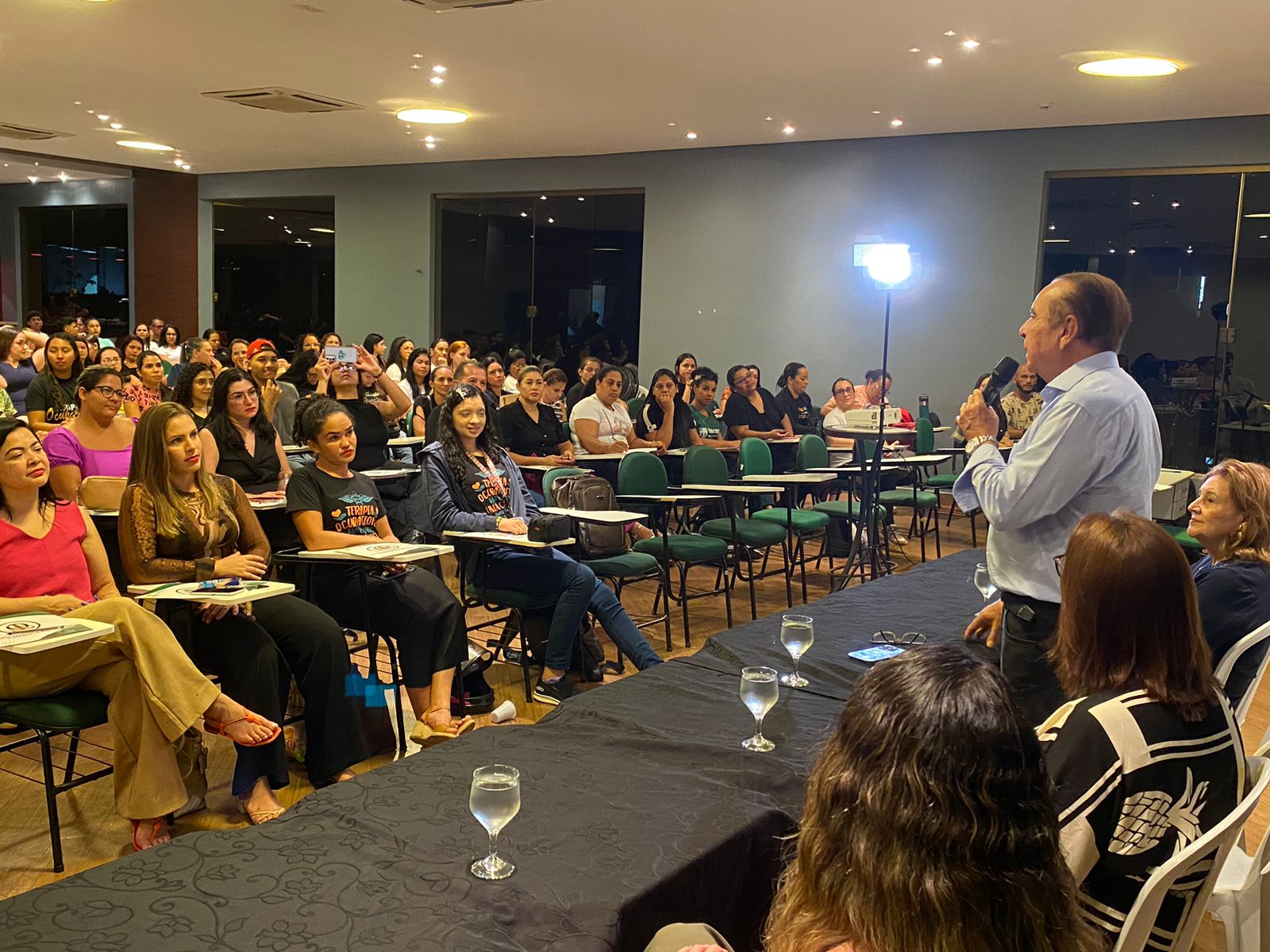 Dr. Aparício Carvalho também compartilhou sua vivência na área de saúde mental, relembrando sua atuação no Núcleo de Psiquiatria do Hospital de Base Dr. Ary Pinheiro. Ele destacou a relevância do papel dos terapeutas ocupacionais, especialmente em intervenções em saúde mental, e revelou como essa experiência foi determinante para trazer o curso de Terapia Ocupacional para a FIMCA. Ele ressaltou que a instituição foi a primeira na região norte do Brasil a oferecer essa formação.