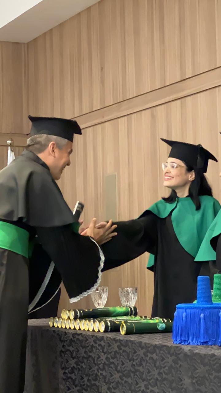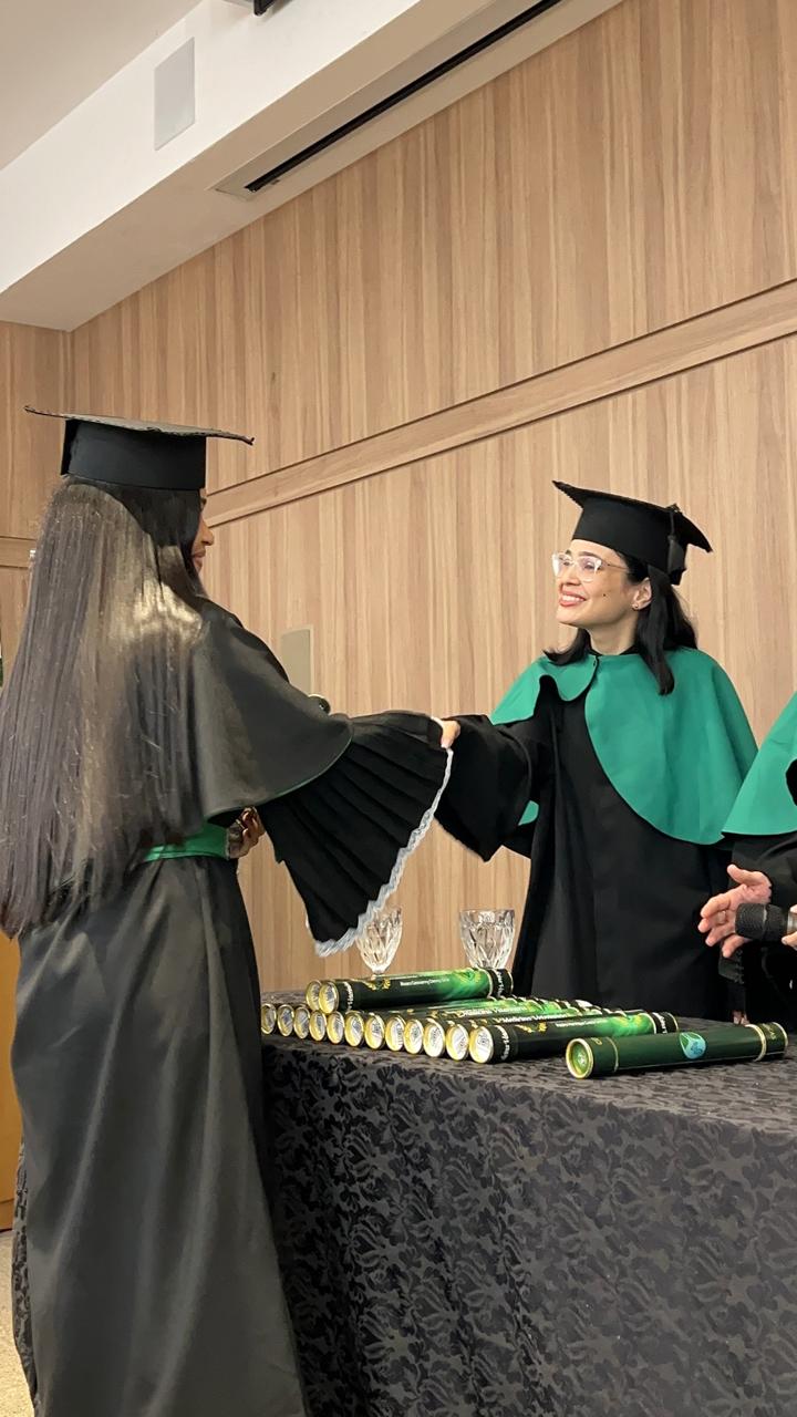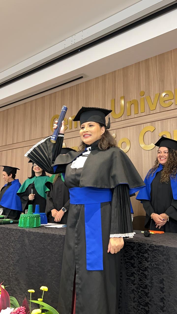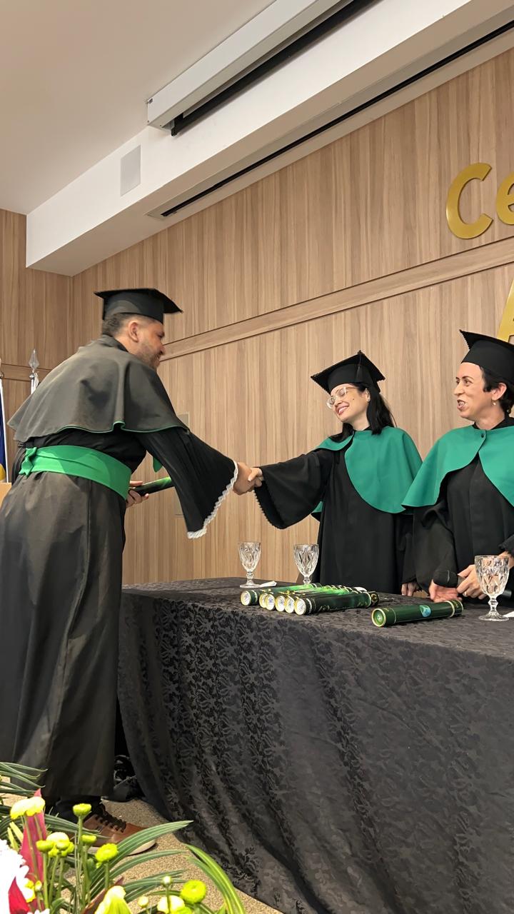 A solenidade aconteceu no Anfiteatro do Centro Universitário – FIMCA e contou com a presença da Diretora Pedagógica, Dra. Nelice Batistelli, além dos coordenadores: Ana Emília Tavares, Jéssica Gimaque, Carla Tames, Izabel Coelho e Leandro Kester, respectivamente. Durante a cerimônia, os formandos receberam seus diplomas em um ambiente de celebração e emoção, compartilhado com familiares, amigos e professores que acompanharam sua trajetória acadêmica.