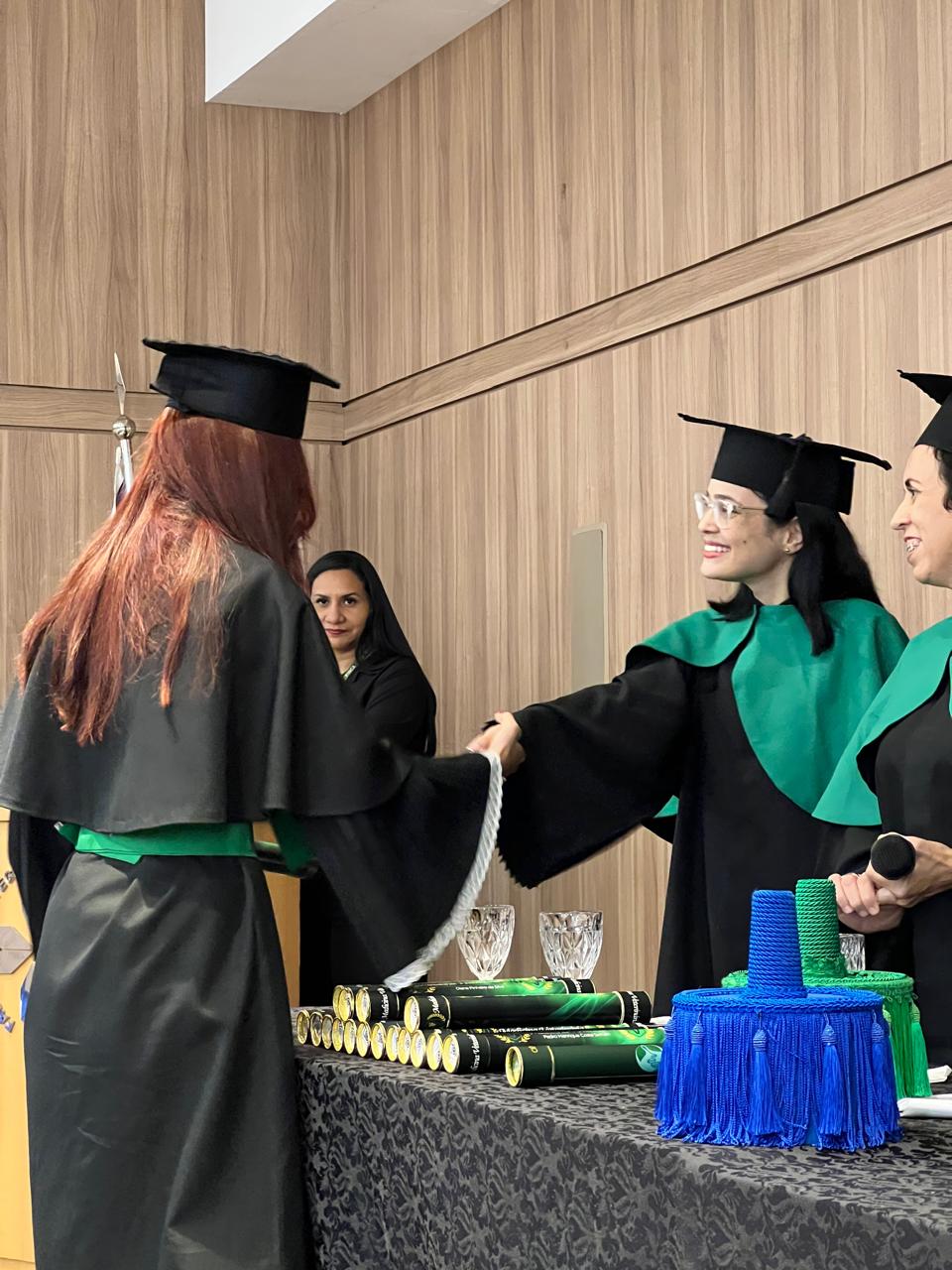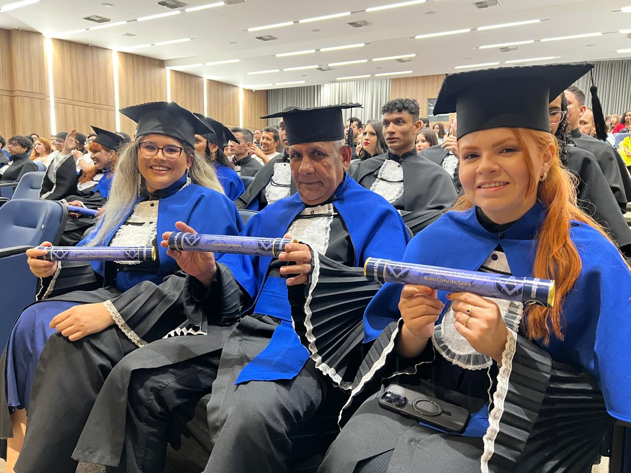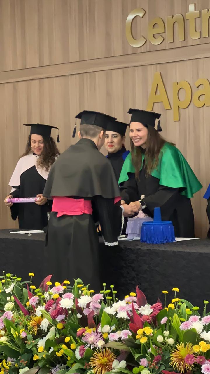 A solenidade aconteceu no Anfiteatro do Centro Universitário – FIMCA e contou com a presença da Diretora Pedagógica, Dra. Nelice Batistelli, além dos coordenadores: Ana Emília Tavares, Jéssica Gimaque, Carla Tames, Izabel Coelho e Leandro Kester, respectivamente. Durante a cerimônia, os formandos receberam seus diplomas em um ambiente de celebração e emoção, compartilhado com familiares, amigos e professores que acompanharam sua trajetória acadêmica.