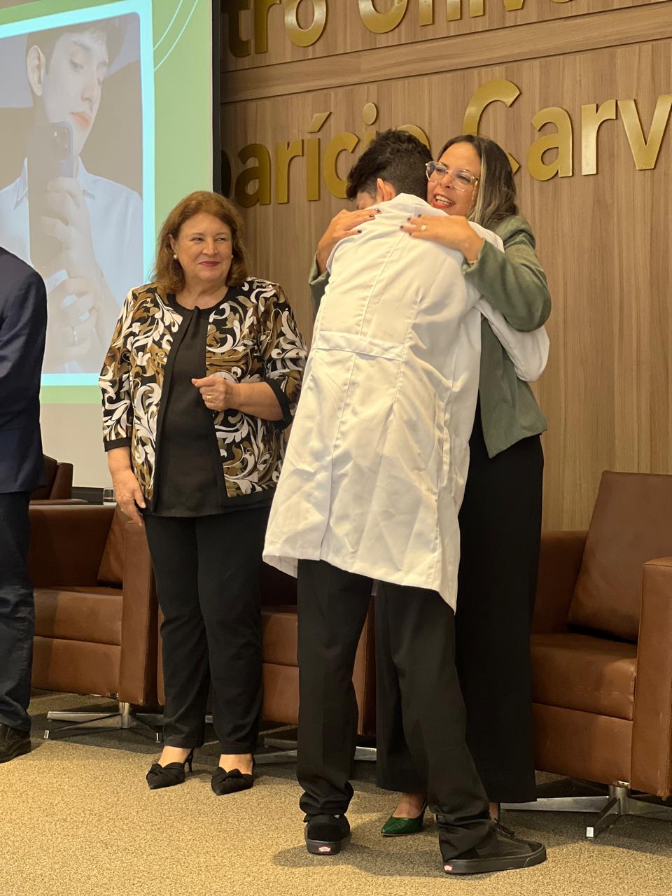Durante a cerimônia, o Dr. Aparício Carvalho destacou a importância da ética e do compromisso na carreira de fisioterapia, encorajando os alunos a abraçarem esses valores em sua prática profissional. Ele ressaltou que o jaleco é mais do que uma vestimenta; é um símbolo de responsabilidade e dedicação ao cuidado com o próximo, e que cada aluno deve se orgulhar do caminho que escolheu trilhar, comprometendo-se com a excelência e o bem-estar da comunidade.
