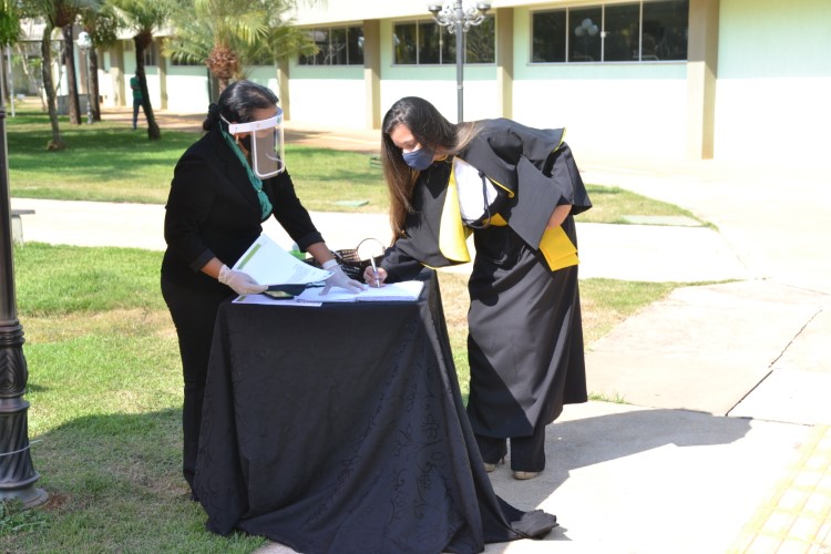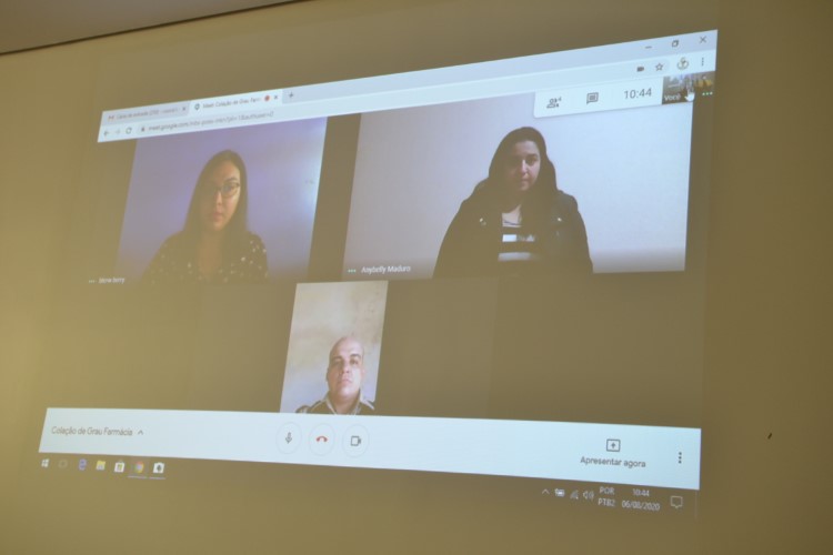 Três Acadêmicos de Farmácia que não puderam comparecer também colaram grau, a colação desses acadêmicos foi realizada através da internet por chamada de vídeo, onde eles proferiram o juramento e receberam suas outorgas de grau.