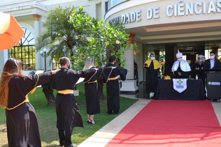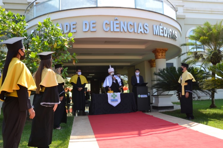 A cerimônia de colação de grau foi presidida pelo Magnifico Reitor do Centro Universitário FIMCA, Dr. Aparício Carvalho de Morais, a solenidade foi realizada na área verde em frente ao palácio de Ciência Médicas do campus universitário, sem a presença dos familiares e dos alunos, em razão das recomendações dos órgãos governamentais para evitar aglomeração.