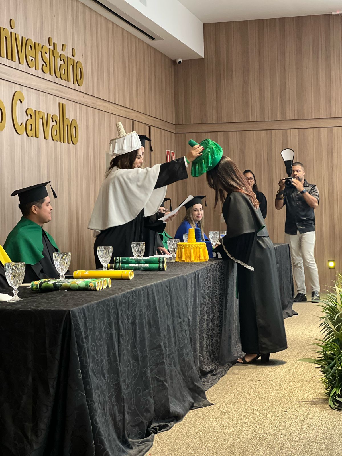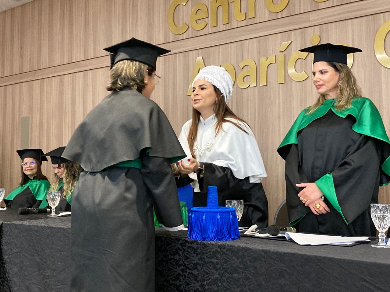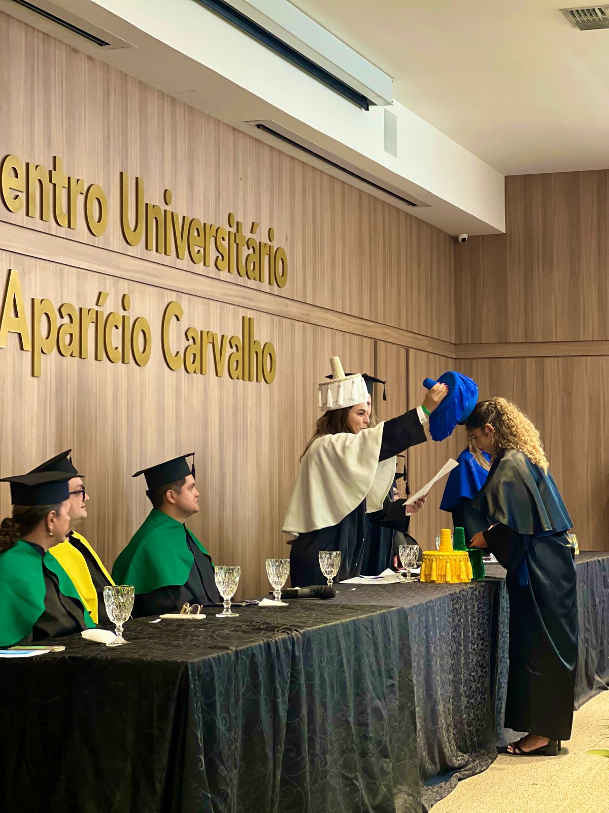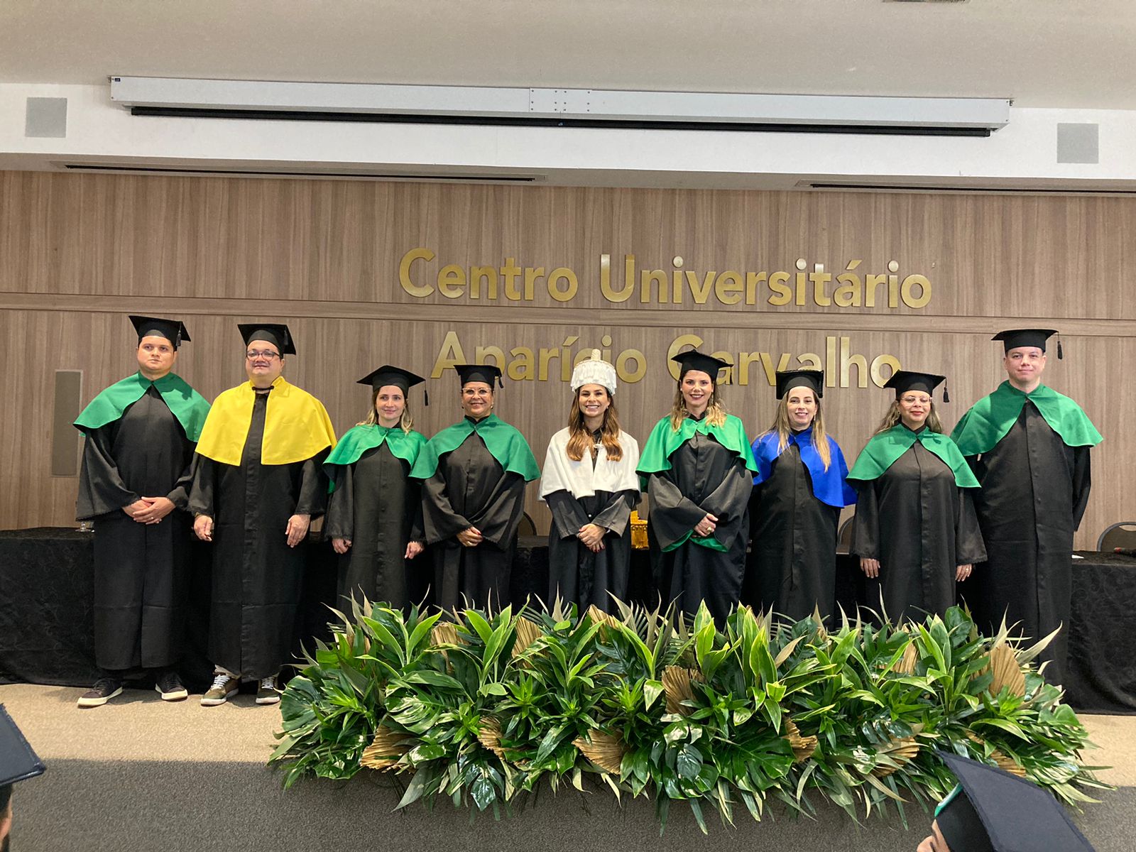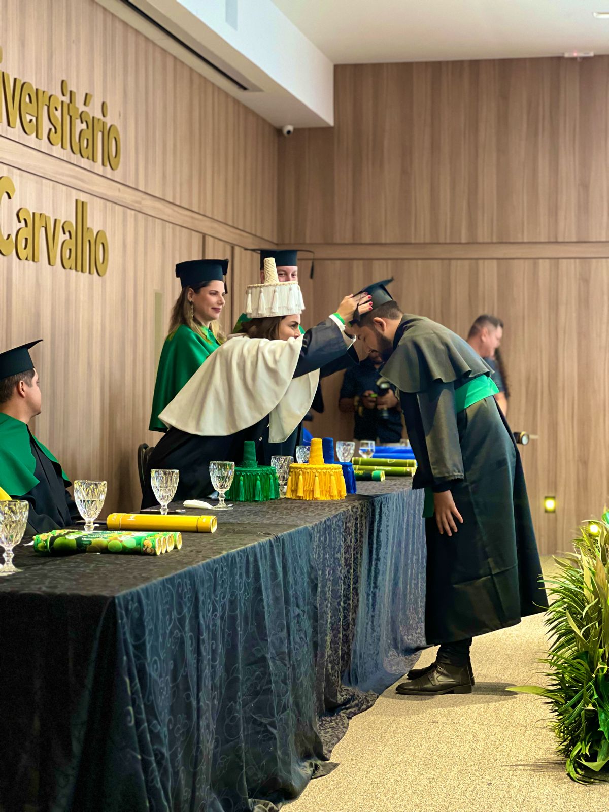 A solenidade foi iniciada com a leitura de uma carta marcante enviada pelo Reitor Emérito e Diretor-Presidente do Grupo Educacional Aparício Carvalho, Dr. Aparício Carvalho de Moraes, que parabenizou cada um dos formandos por sua jornada: “Este é um momento significativo, foram anos de dedicação, esforço e aprendizado, não apenas de conhecimento técnico, mas também de habilidades essenciais, como resiliência, trabalho em equipe e paixão pela área em que escolheram atuar”, escreveu Dr. Aparício.