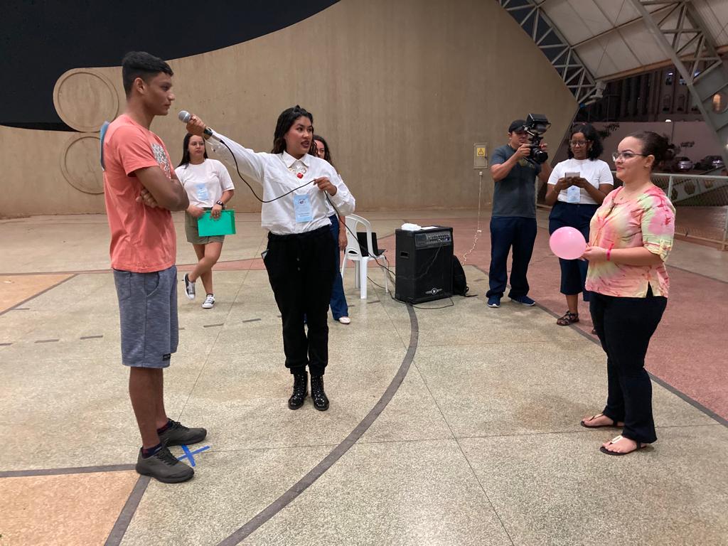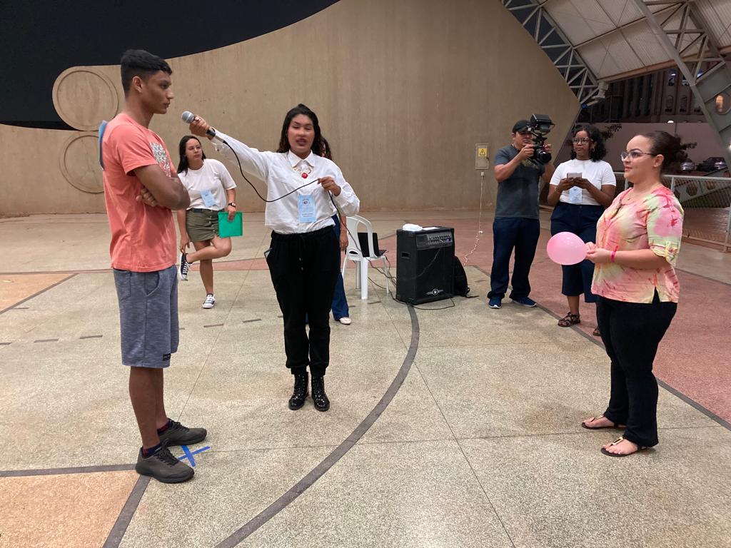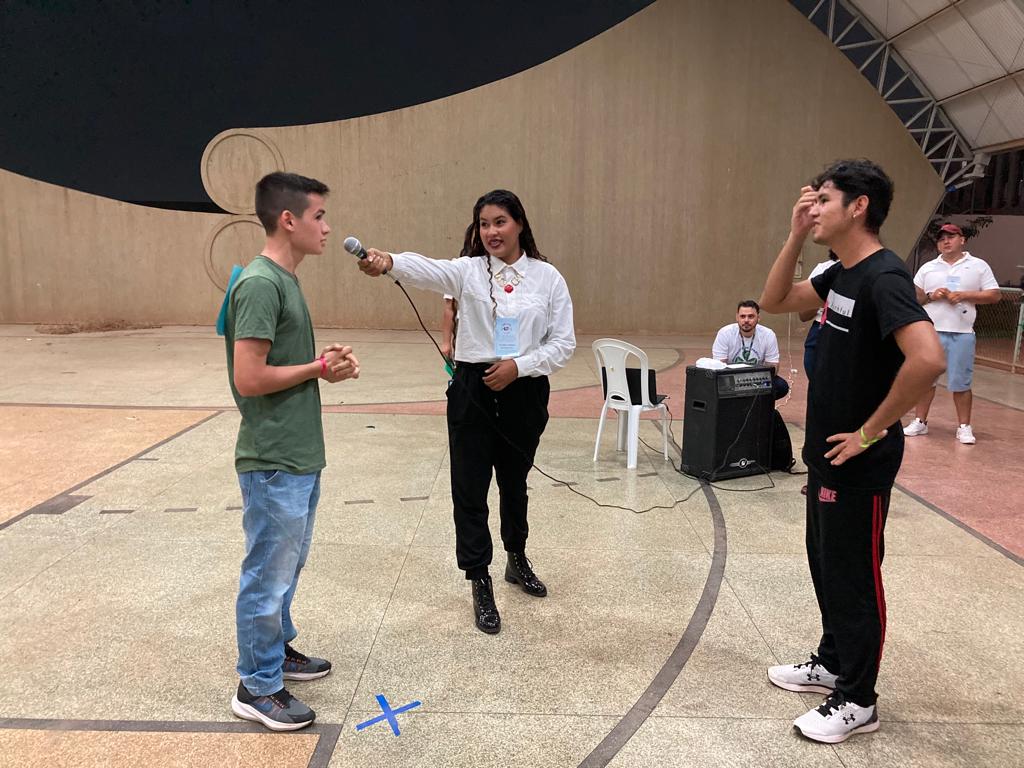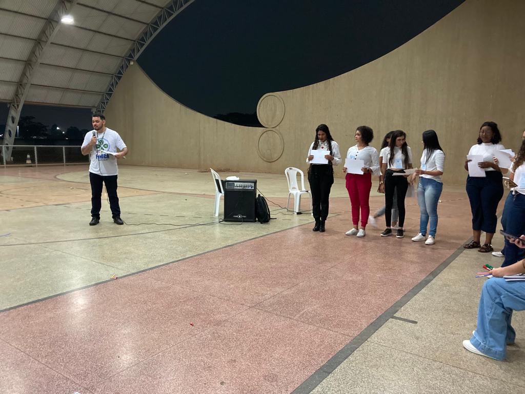 O calouro André Sandro disse que “a gincana é uma coisa inovadora… não é uma coisa que define classe, turma… tá todo mundo junto em busca de um objetivo: o ponto! Eu sou de contabilidade e aqui tem a galera da administração, mas a gente tá pensando igual”.