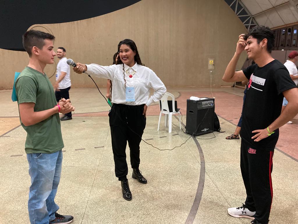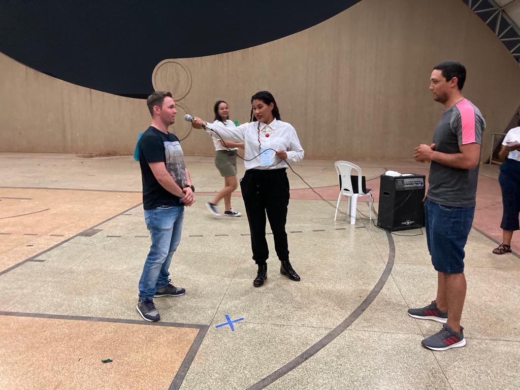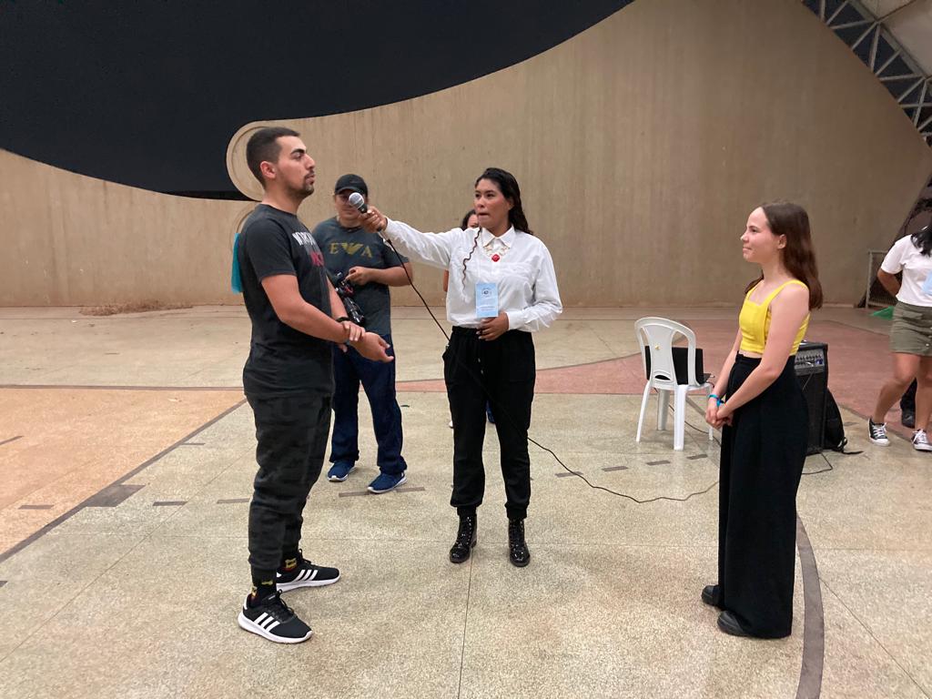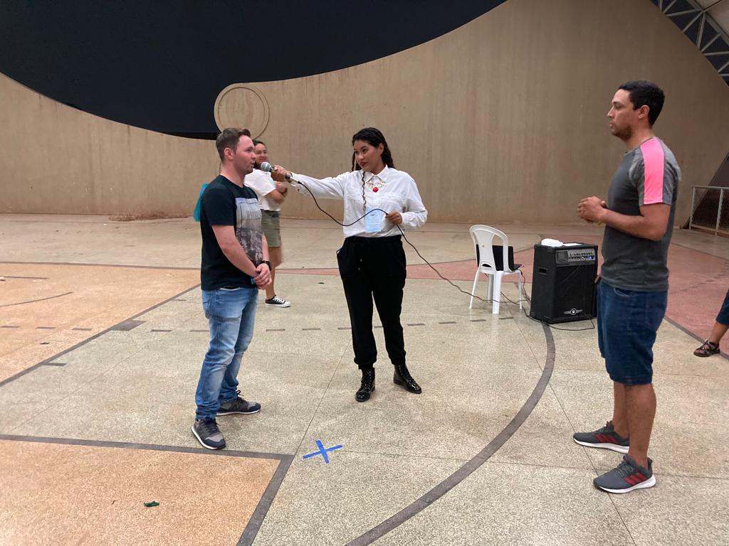 O calouro André Sandro disse que “a gincana é uma coisa inovadora… não é uma coisa que define classe, turma… tá todo mundo junto em busca de um objetivo: o ponto! Eu sou de contabilidade e aqui tem a galera da administração, mas a gente tá pensando igual”.