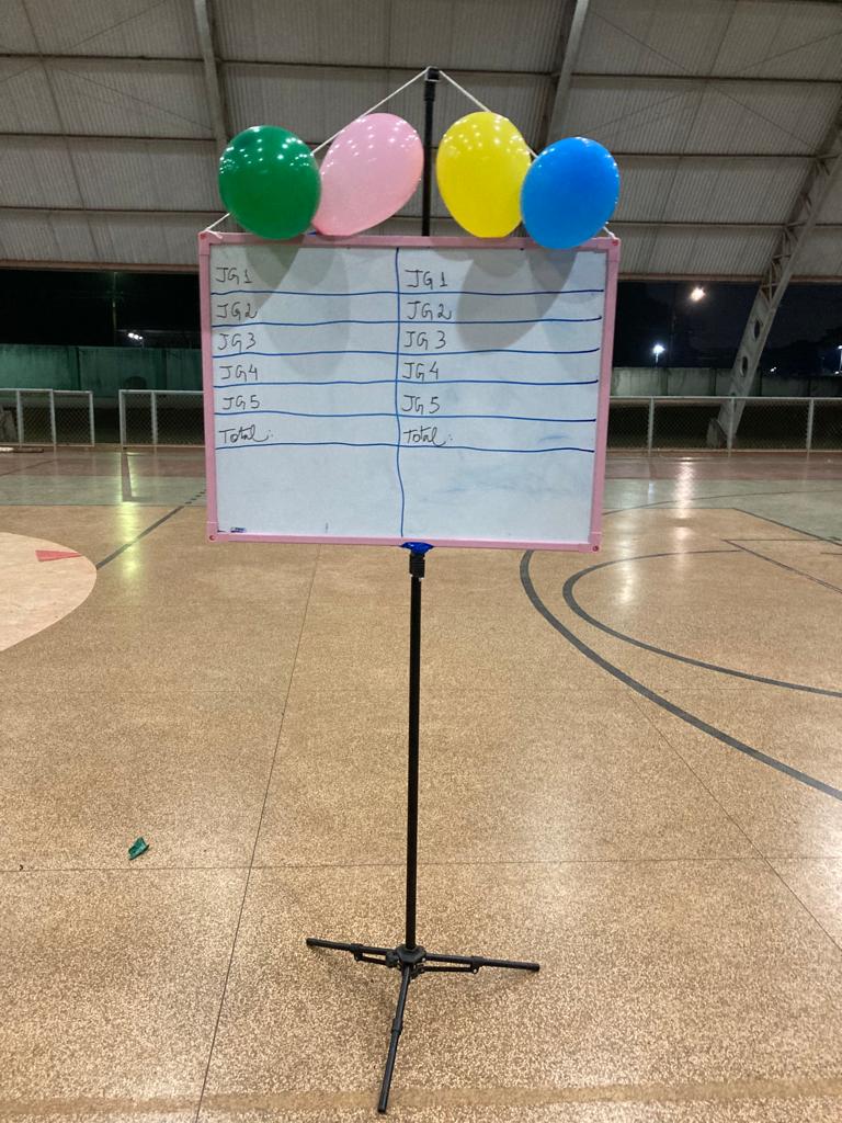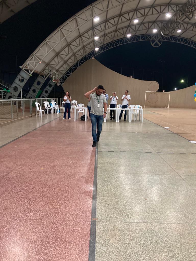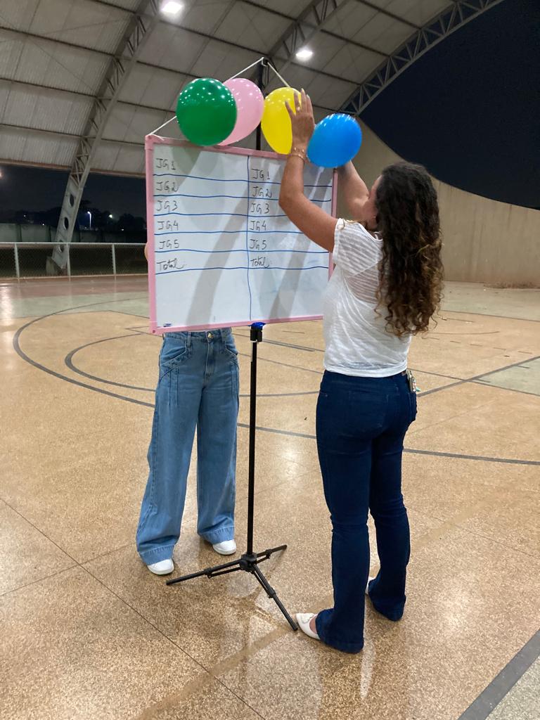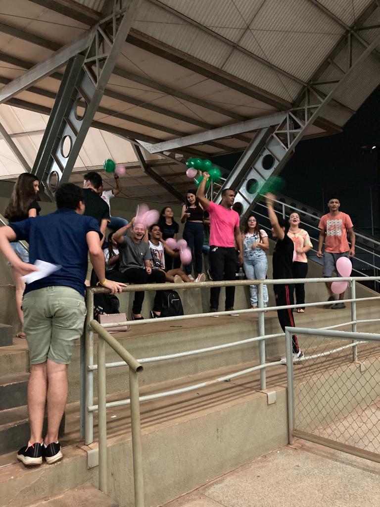 A gincana contou com diversas atividades, começando com a divisão das esquipes entre “azul e amarelo” e “verde e rosa”. Depois, os professores foram homenageados com certificados contendo adjetivos sobre eles. Além das brincadeiras, os docentes, que compunham a mesa avaliadora, estavam atentos também à animação das torcidas.