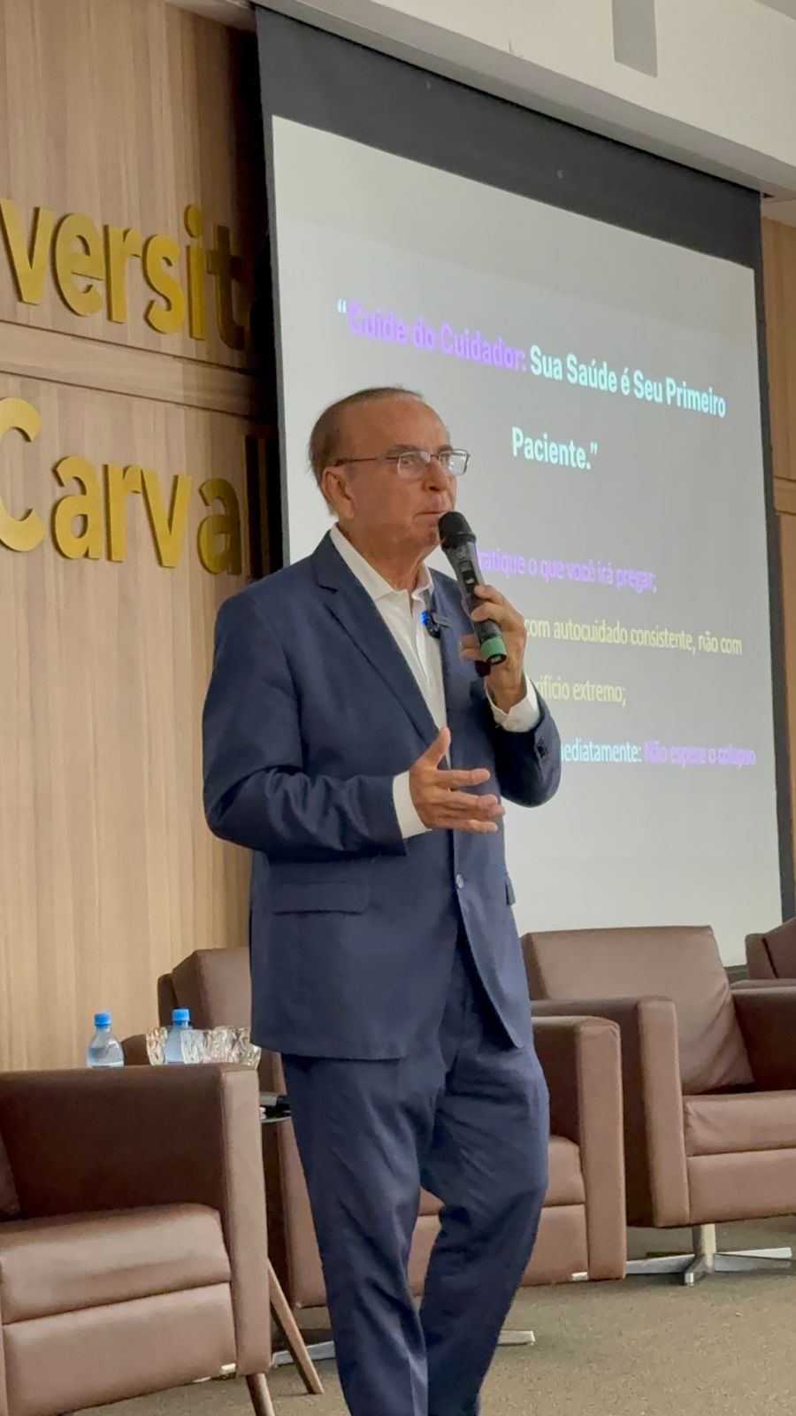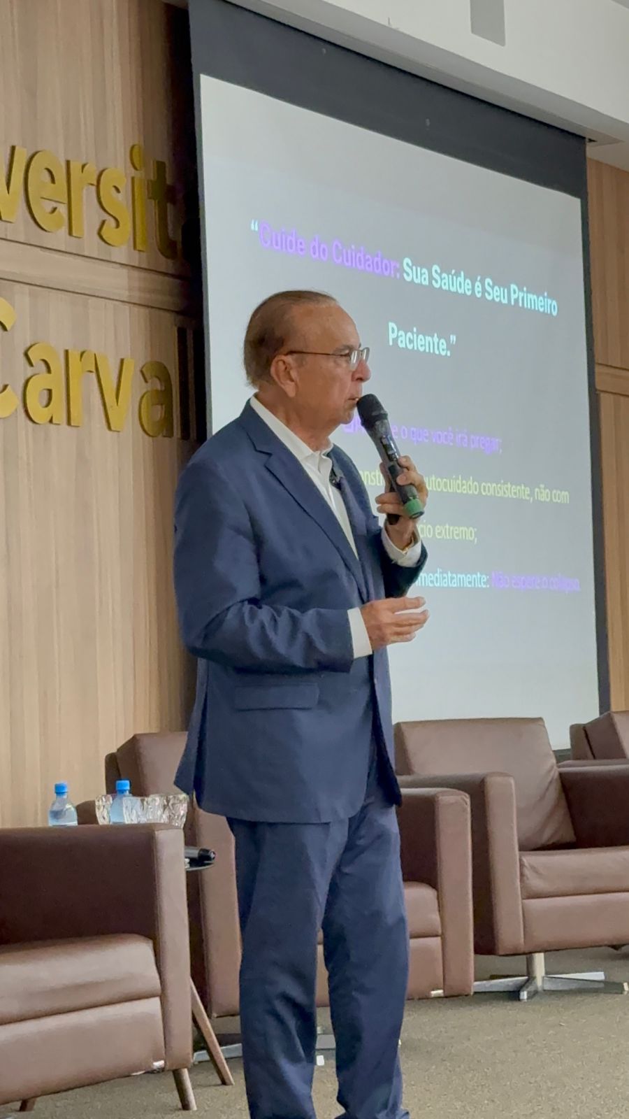 Logo após a abertura, os participantes acompanharam a primeira palestra do evento, ministrada pelo próprio Dr. Aparício Carvalho em parceria com a Dra. Vanessa Merlen, com o tema “Saúde Mental do Estudante de Medicina: Autocuidado e Prevenção de Burnout”. A discussão abordou os desafios emocionais enfrentados por estudantes e profissionais da saúde, destacando a importância do equilíbrio entre a vida acadêmica e o bem-estar pessoal.