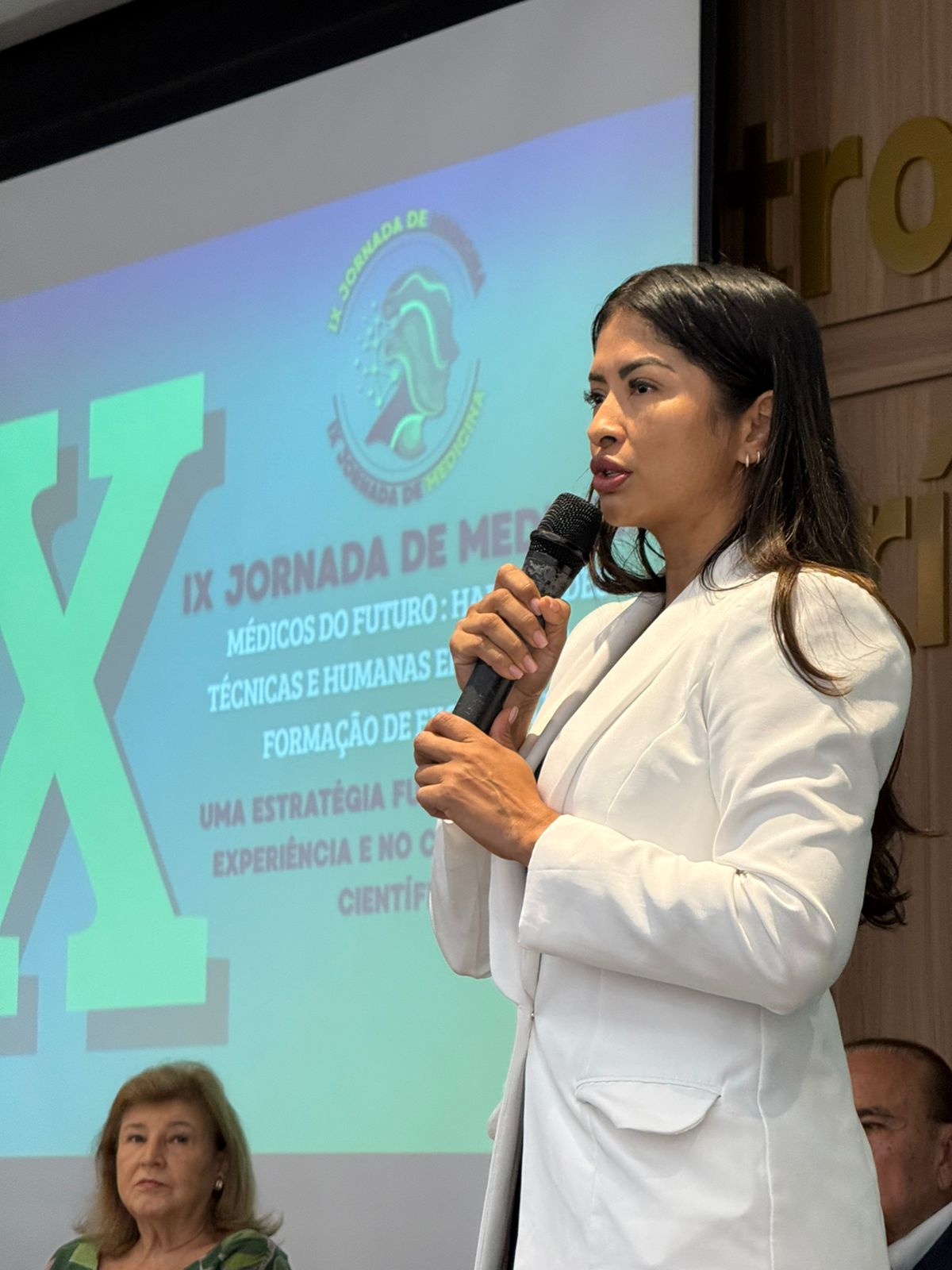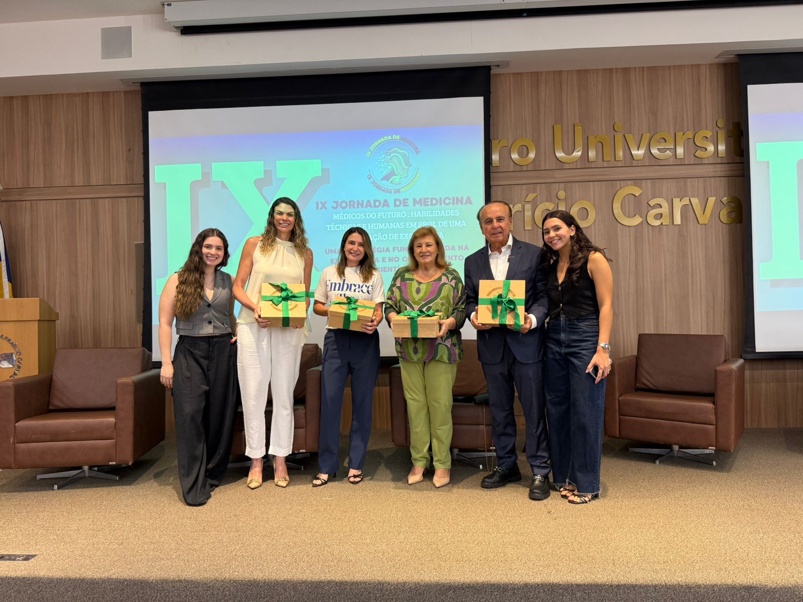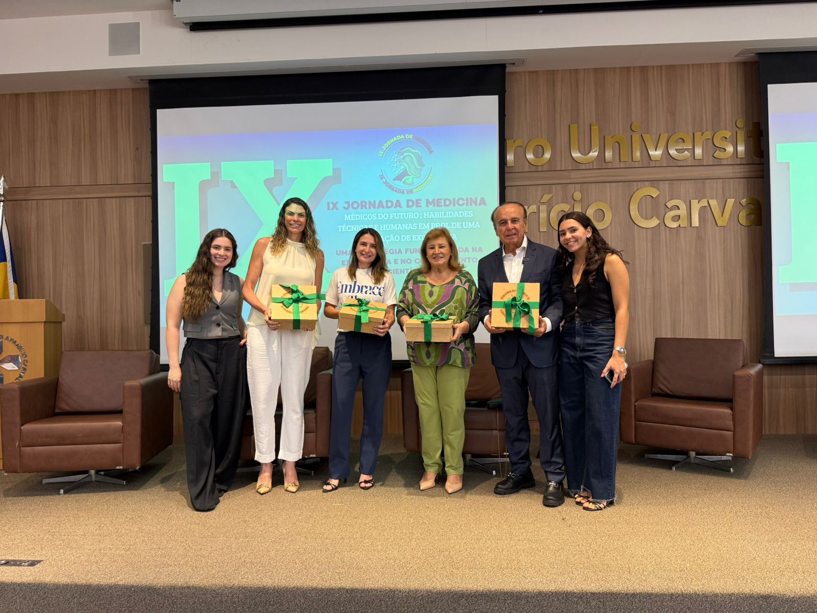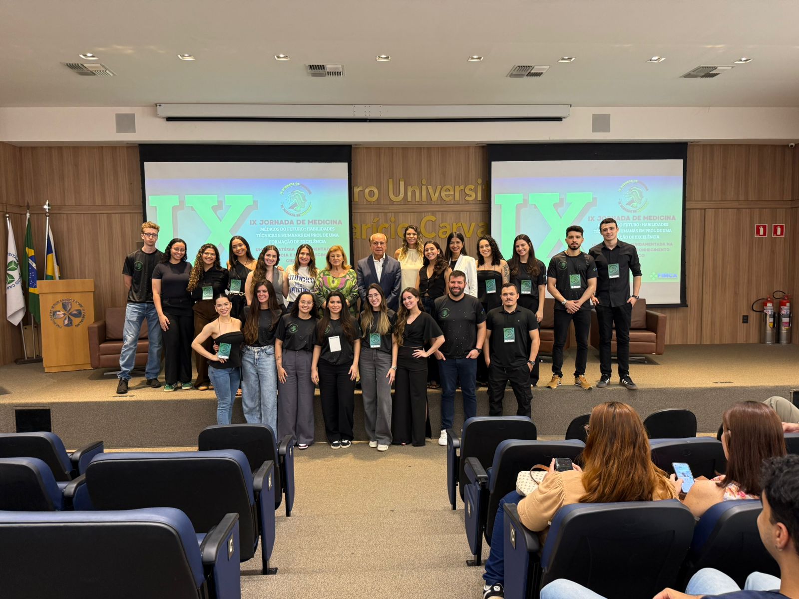 A cerimônia de abertura contou com a presença do Dr. Aparício Carvalho, reitor emérito e diretor presidente do Grupo Educacional Aparício Carvalho; da Dra. Maria Silvia Fonseca Ribeiro Carvalho de Moraes, reitora emérita; da Dra. Mariana Carvalho, reitora da FIMCA; da Dra. Vanessa Merlen, coordenadora do curso de Medicina, além da professora Mariana Delfino, vice-coordenadora, e da Dra. Alcione de Oliveira dos Santos, coordenadora docente da Jornada.