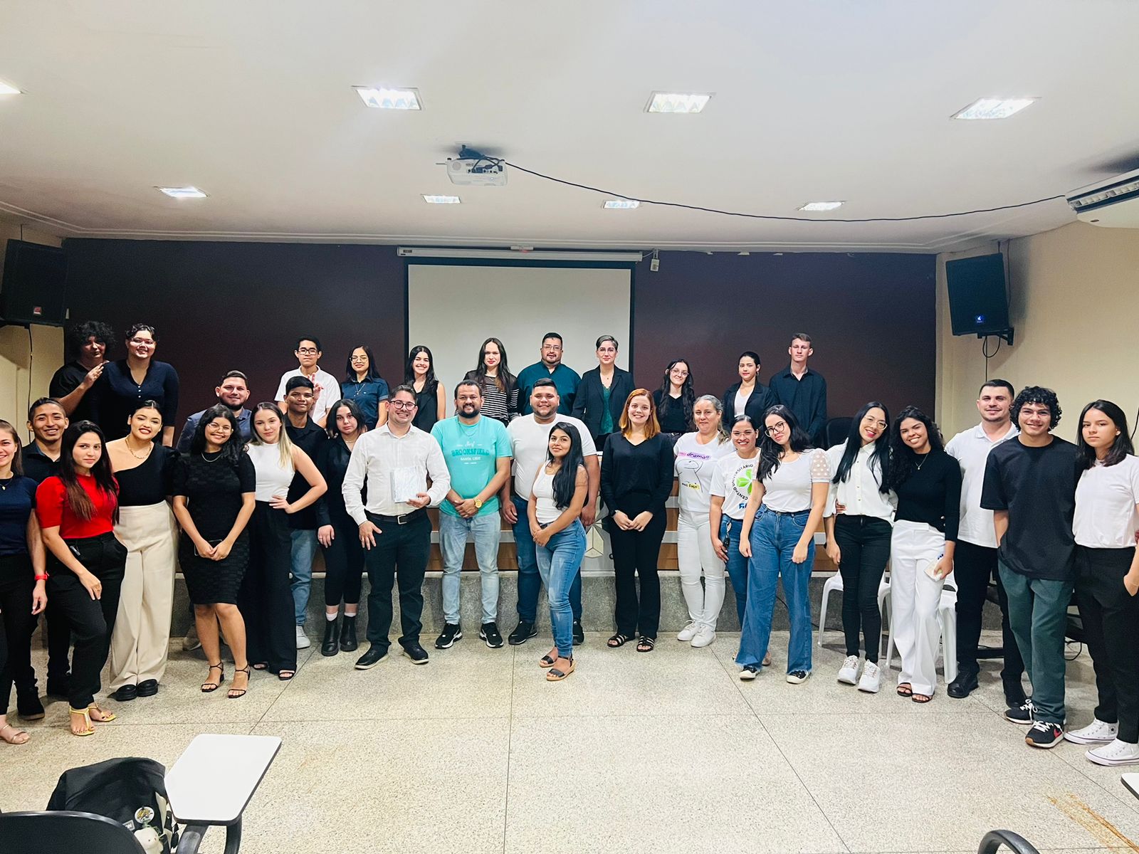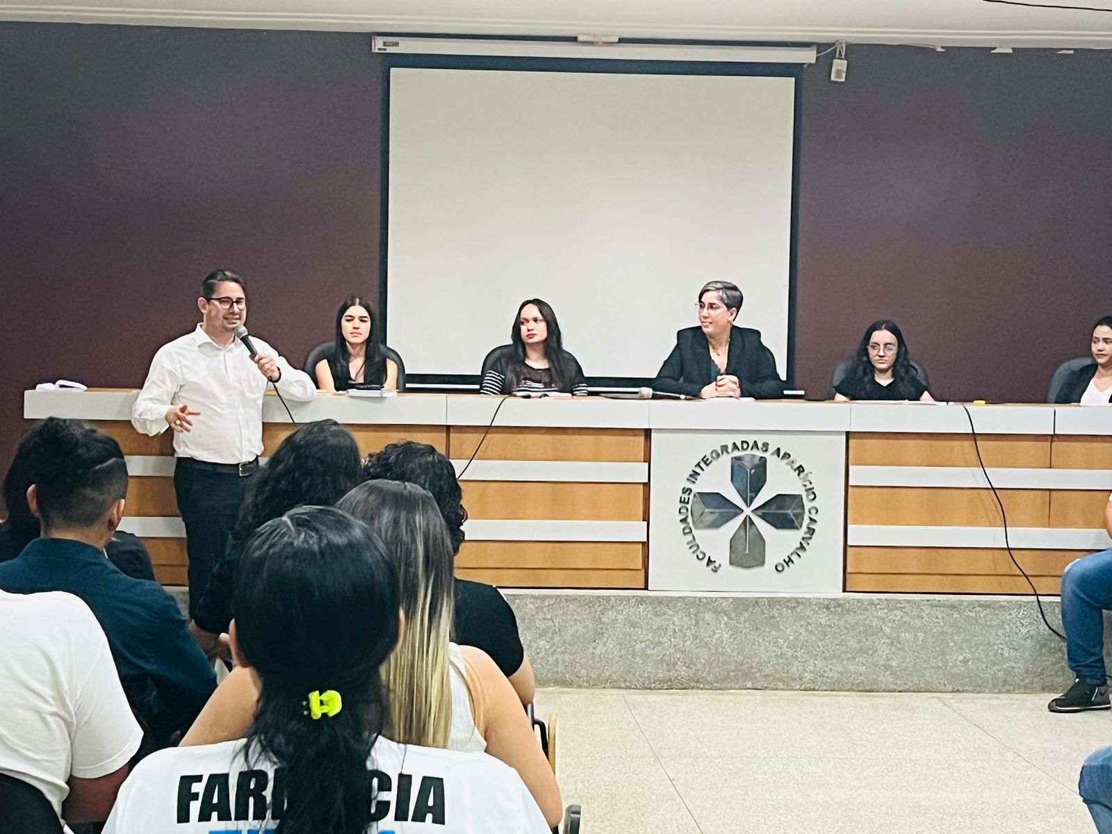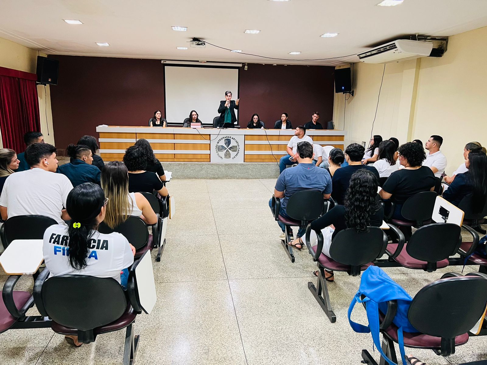 Acadêmicos do primeiro período do curso de Farmácia do Centro Universitário Aparicio Carvalho – FIMCA participaram de um júri-simulado como parte da disciplina de Habilidades e Ética Profissional. O evento contou com a presença do Dr. Lincoln Oliveira, conselheiro regional de farmácia e presidente da Sociedade de Farmacêuticos e Farmácias Comunitárias, e Elizama, ex-aluna e estagiária no Conselho Regional de Farmácia de Rondônia (CRF/RO).