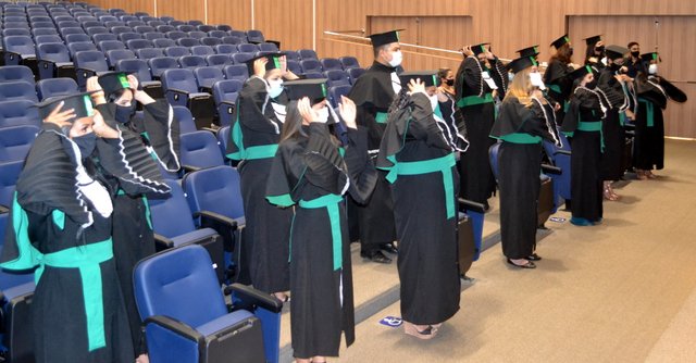 Com o juramento de dedicar a vida profissional a serviço da humanidade, respeitando a dignidade e os direitos da pessoa humana, exercendo a enfermagem com consciência e dedicação, os novos profissionais receberam a outorga de bacharéis em Enfermagem e seguem prontos para o mercado de trabalho.