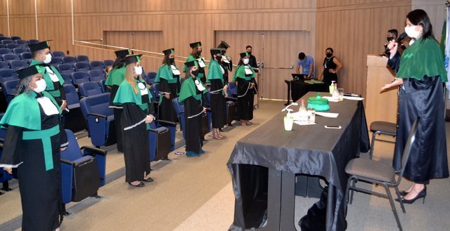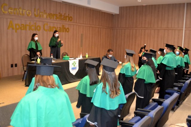 A solenidade de formatura foi presidida pela diretora acadêmica do Centro Universitário, Dra. Nelice Milena Bastistelli, acompanhada pela coordenadora do curso, Mariana Delfino Rodrigues, em conformidade com os protocolos de segurança, orientações e recomendações da Organização Mundial da Saúde (OMS), bem como o Decreto do Estado de Rondônia nº 25.470, de 21 de outubro de 2020 e as normas institucionais.
