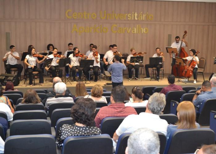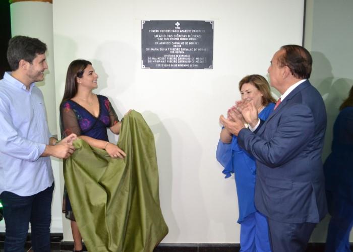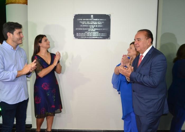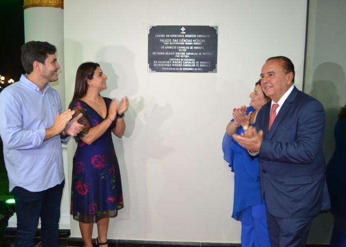 Aconteceu nesta segunda-feira (04) a inauguração do Palácio de Ciências Médicas do Centro Universitário Aparício Carvalho (FIMCA). O evento que começou com a inauguração da fonte com Águas Dançantes, unica no estado, contou com a presença de autoridades da capital Rondoniense e também com toda a imprensa da região. O Reitor do Centro Universitário, Dr. Aparício Carvalho falou do seu sonho de quando era criança de construir um castelo, e hoje a realização desse sonho, que vem a ser toda a estrutura do Grupo Educacional Aparício Carvalho. A Vice-reitora da FIMCA, Dra. Maria Silvia Carvalho, juntamente com seus filhos Mariana Carvalho e Mauricio Carvalho, diretores de expansão do Centro Universitário, também falaram da importância dessa nova estrutura.