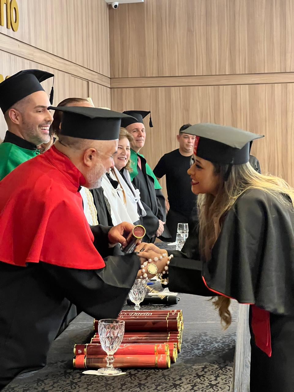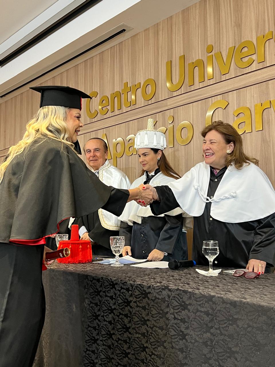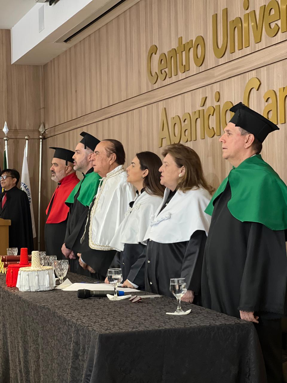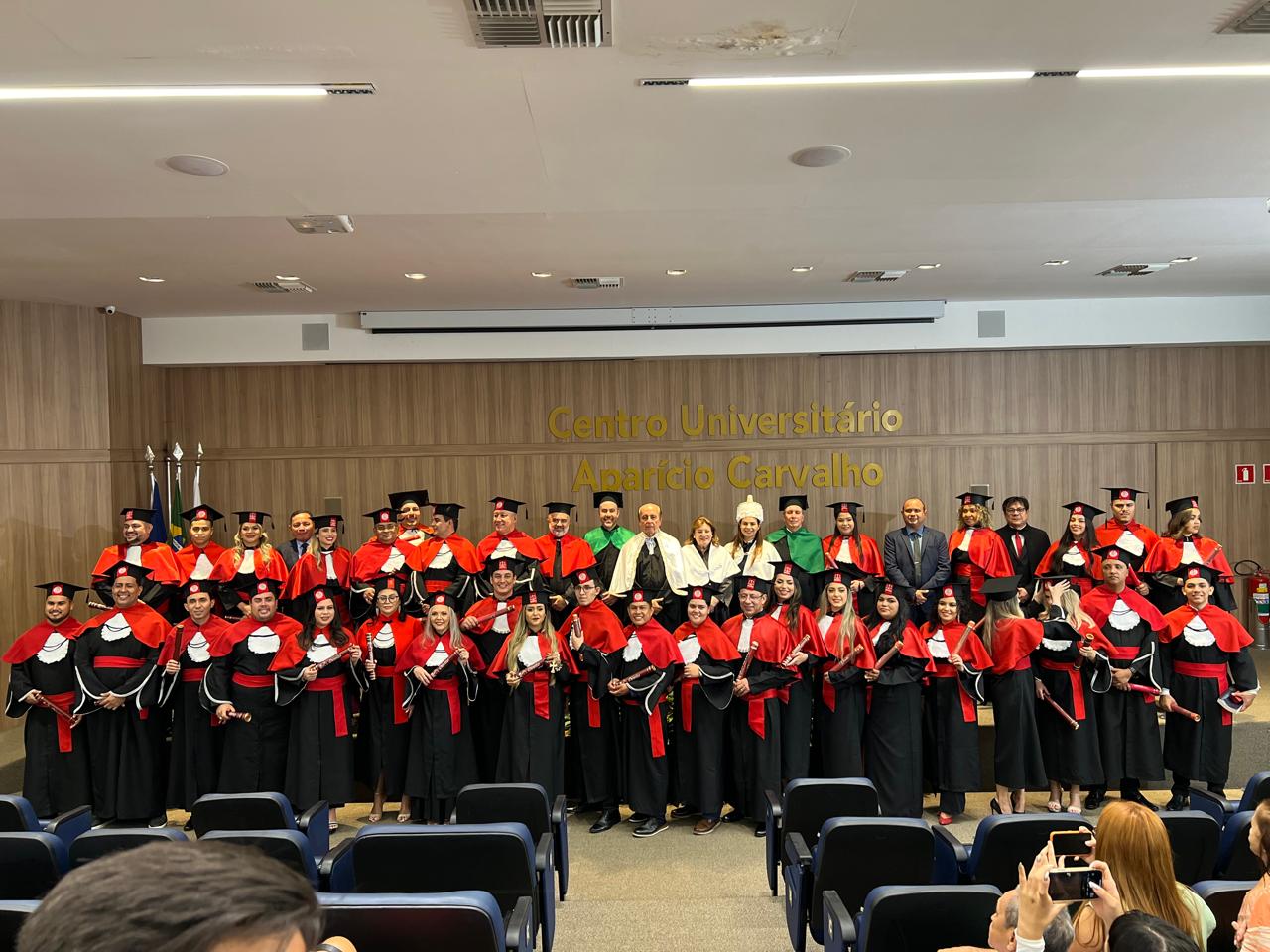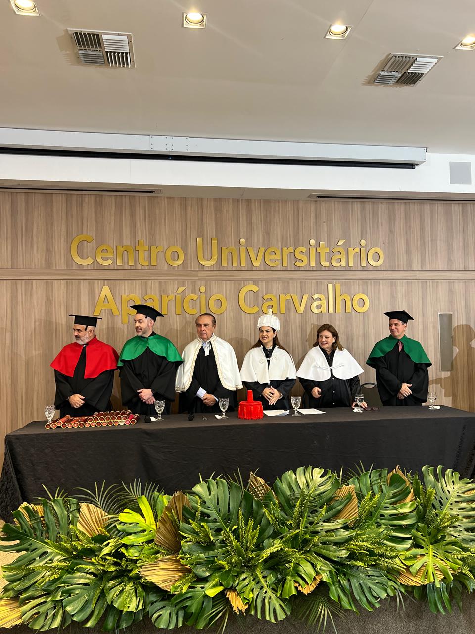 Estiveram presentes na cerimônia a Magnífica Reitora Dra. Mariana Carvalho, o Reitor Emérito Dr. Aparício Carvalho, a Reitora Emérita Dra. Maria Silvia Fonseca Ribeiro Carvalho de Moraes, além do Coordenador Acadêmico Fernando Ramalho, do Coordenador do Curso de Direito Prof. César Jacques, e do Prof. Haroldo Lopes, que juntos testemunharam o início de uma nova fase na vida dos formandos.