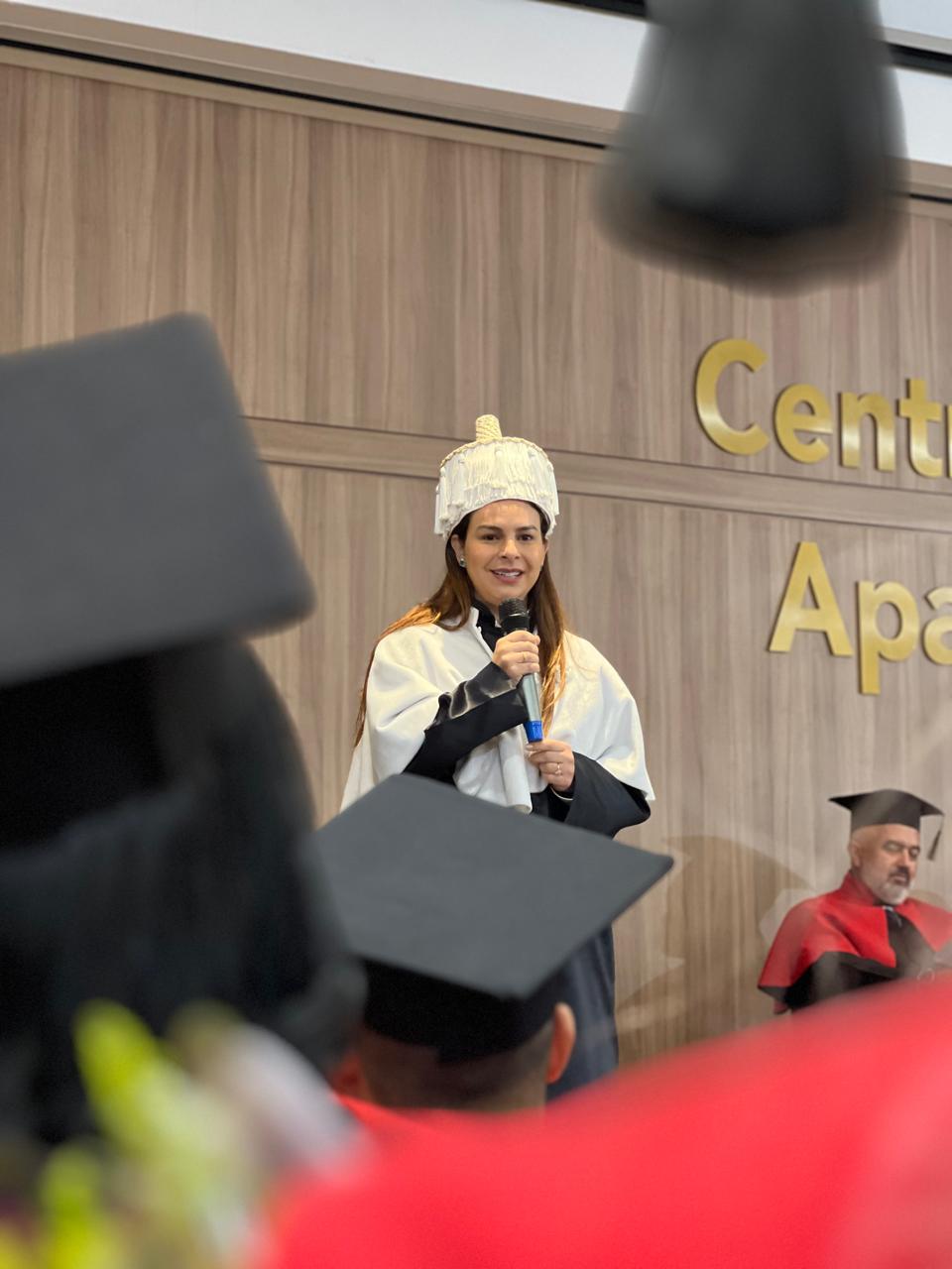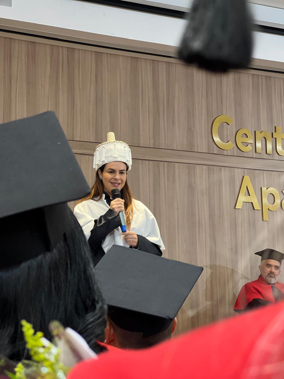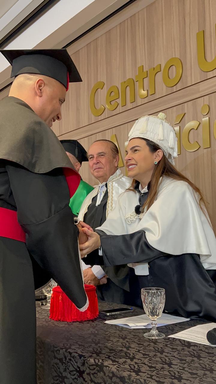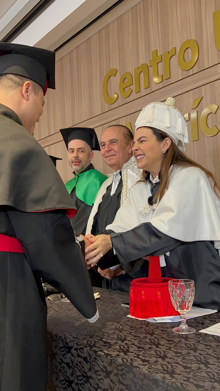 A Dra. Mariana Carvalho, em sua fala, destacou o papel dos formandos como agentes de mudança na sociedade: “Vocês estão saindo daqui com o conhecimento necessário para fazer a diferença no mundo. A primeira turma sempre será lembrada pela coragem e pela determinação, e eu espero que levem consigo não apenas o conhecimento técnico, mas também os valores que procuramos transmitir ao longo de sua formação. Esse é apenas o começo de uma jornada que, tenho certeza, será de muitas realizações.”