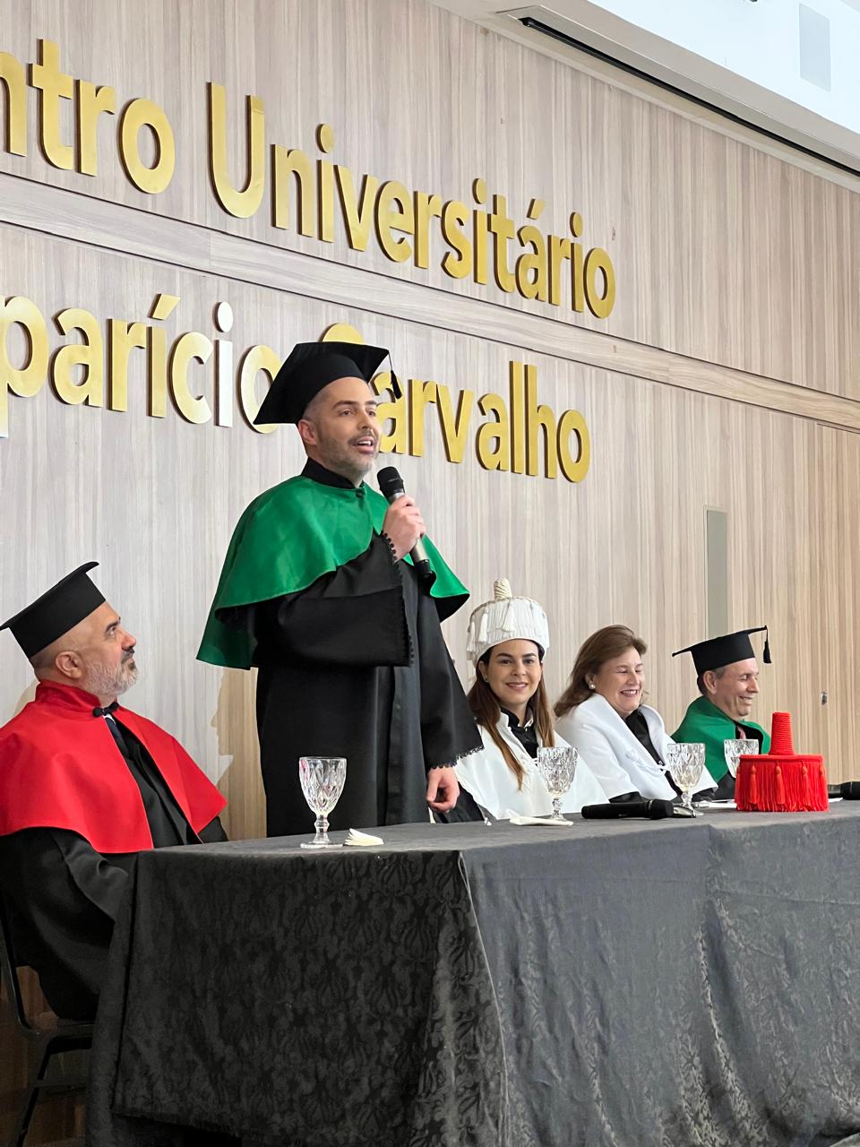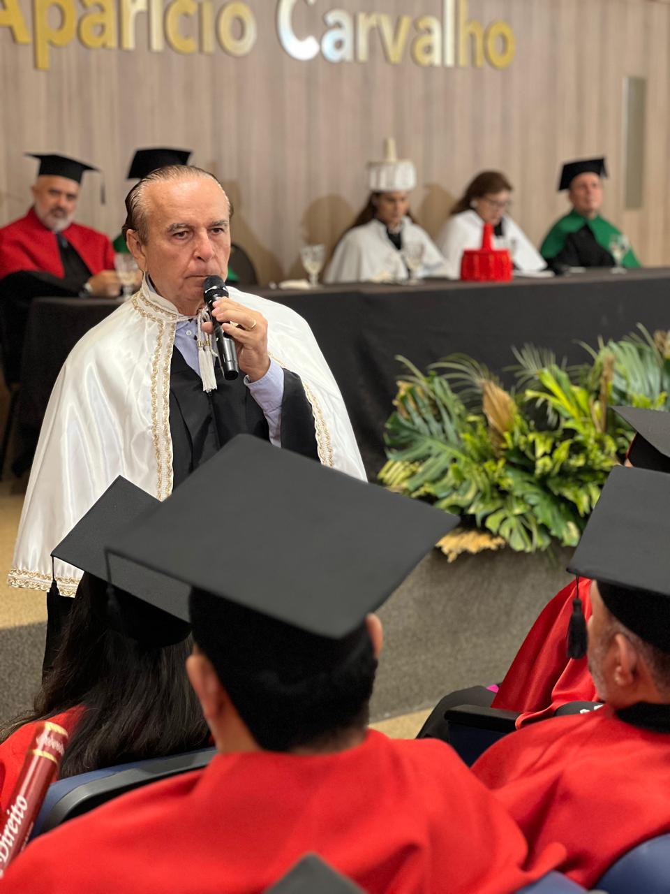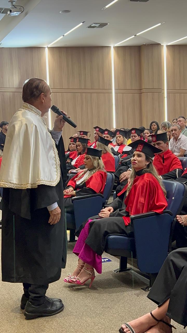 Em seu discurso, o Dr. Aparício Carvalho ressaltou a importância dessa conquista não apenas para os alunos, mas também para a instituição: “Hoje é um dia de grande orgulho para todos nós. Vocês representam a concretização de um sonho que começou há alguns anos, quando decidimos fundar o curso de Direito na FIMCA. Ver a Primeira Turma se formando é a prova de que estamos no caminho certo, contribuindo para a formação de profissionais éticos e preparados para enfrentar os desafios da carreira jurídica.”