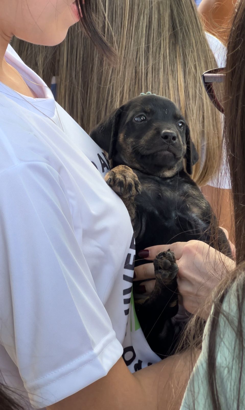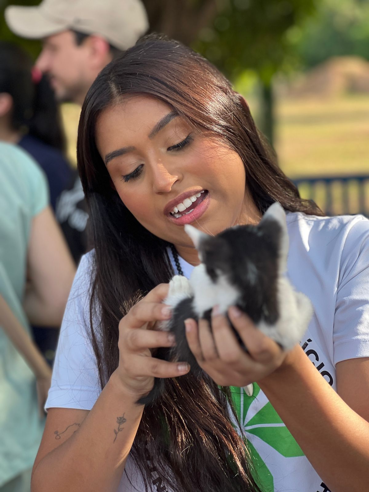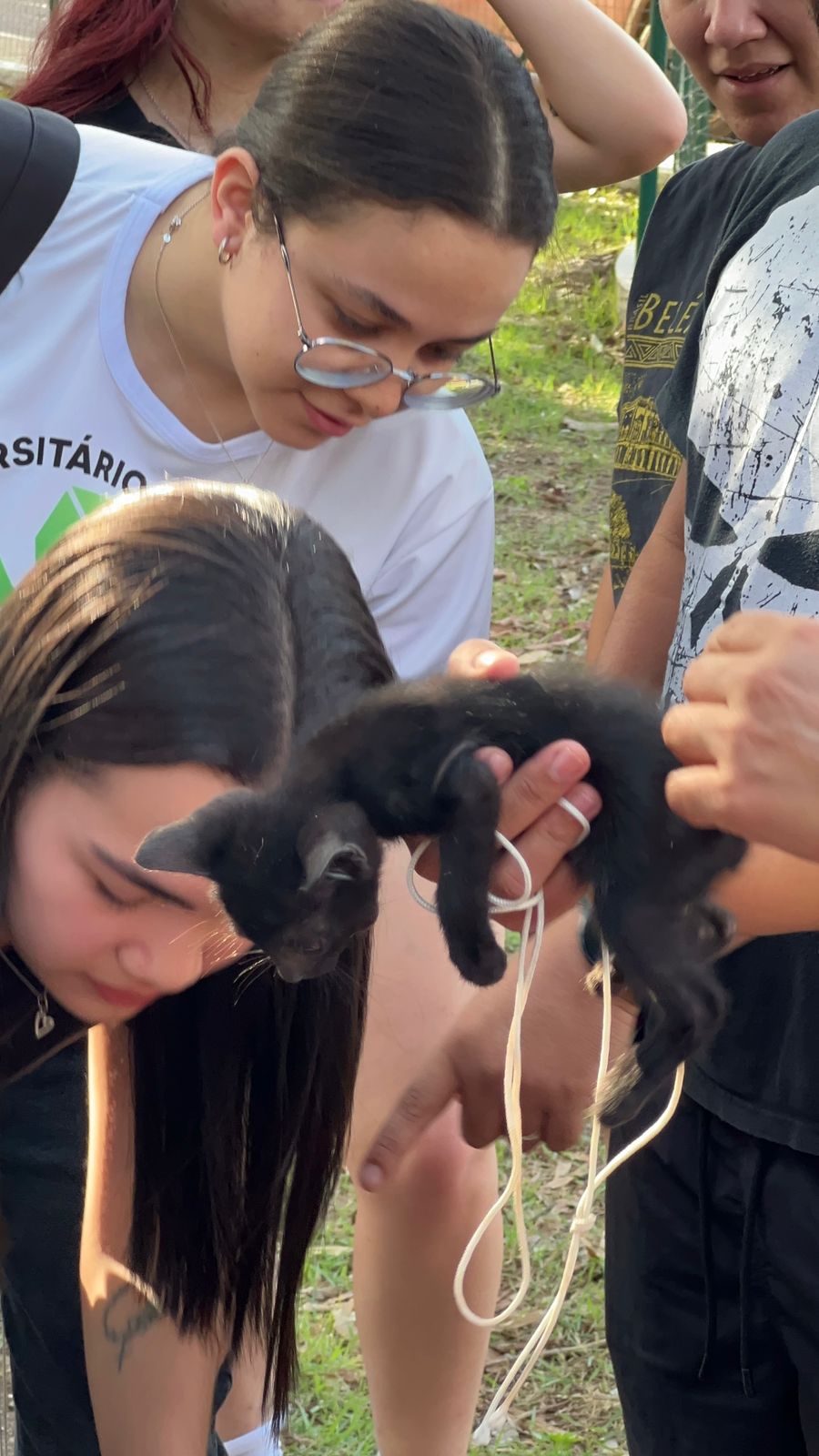 “Eu fiquei sabendo da feirinha pelo Instagram da faculdade. Me mudei pra cá recentemente e sentia falta de uma companhia, então decidi adotar um animalzinho”, contou Amanda, emocionada.