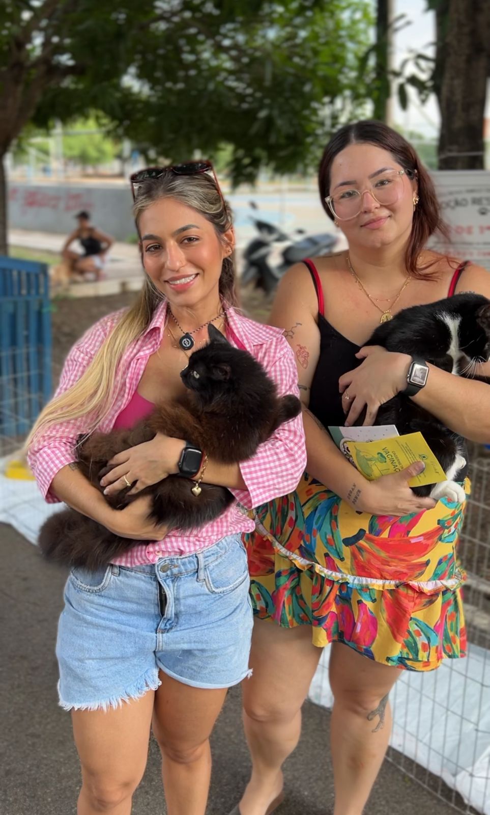 As moradoras Fernanda e Ana Carolina aproveitaram o evento para vacinar seus pets e destacaram a importância da iniciativa: