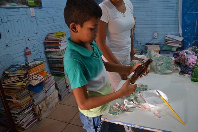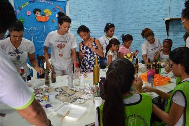 Marcelo de 10 aos contou que a parte que ele mais gostou foi das brincadeiras que foram realizadas durante o dia: “Eu gostei de pintar, de assisti a apresentação do sitio do pica pau amarelo e da pescaria”. Ele aproveitou que o curso de Terapia ocupacional estava realizando a oficina de decoração de materiais recicláveis e decorou uma garrafa para entregar para a sua mãe, de presente de dia das mães.