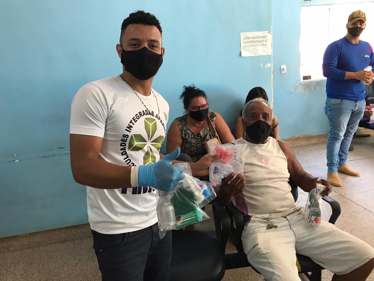 Voluntários do projeto Proteja seu Rosto, Proteja sua Vida em parceria com Bombeiros Civis entregaram, na última sexta (07/08/2020), kits de proteção individual, contendo álcool em gel, álcool líquido, sabonete, máscara reutilizável e material informativo sobre a COVID-19. Mais de 100 kits foram concedidos aos pacientes presentes no Hospital São Cosme e Damião, na Policlínica Ana Adelaide e na UBS Areal da floresta.