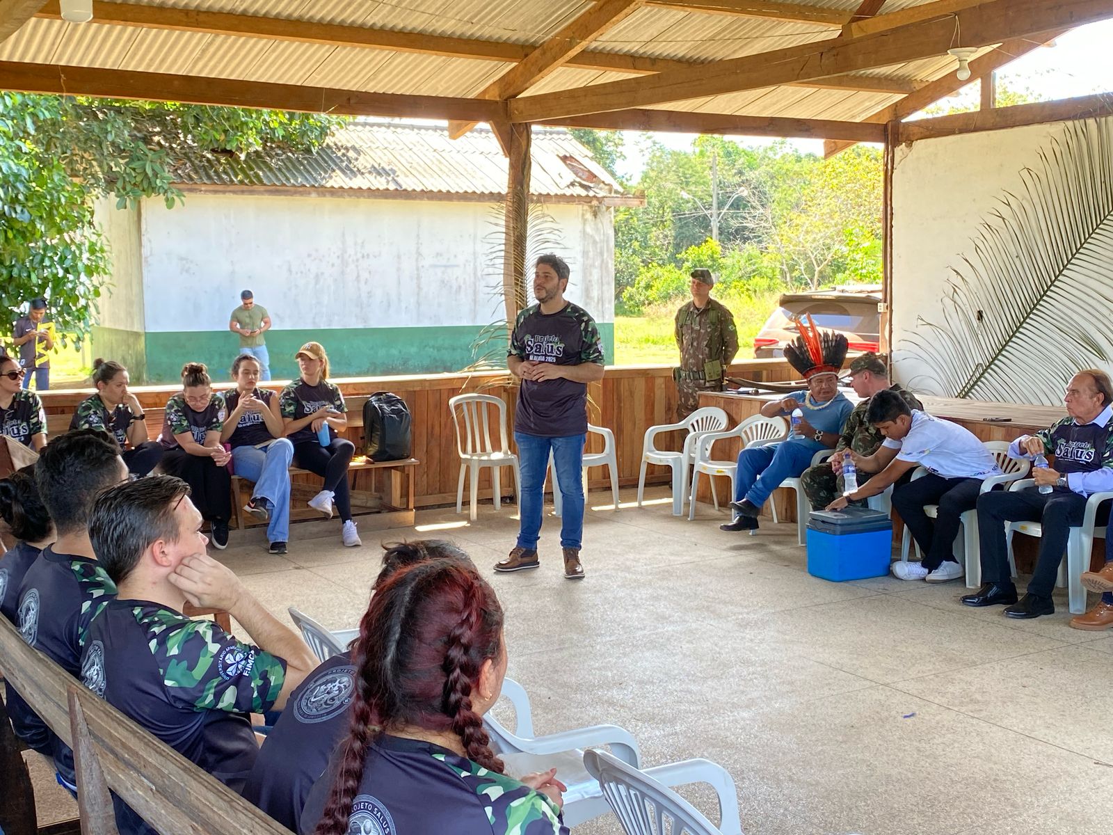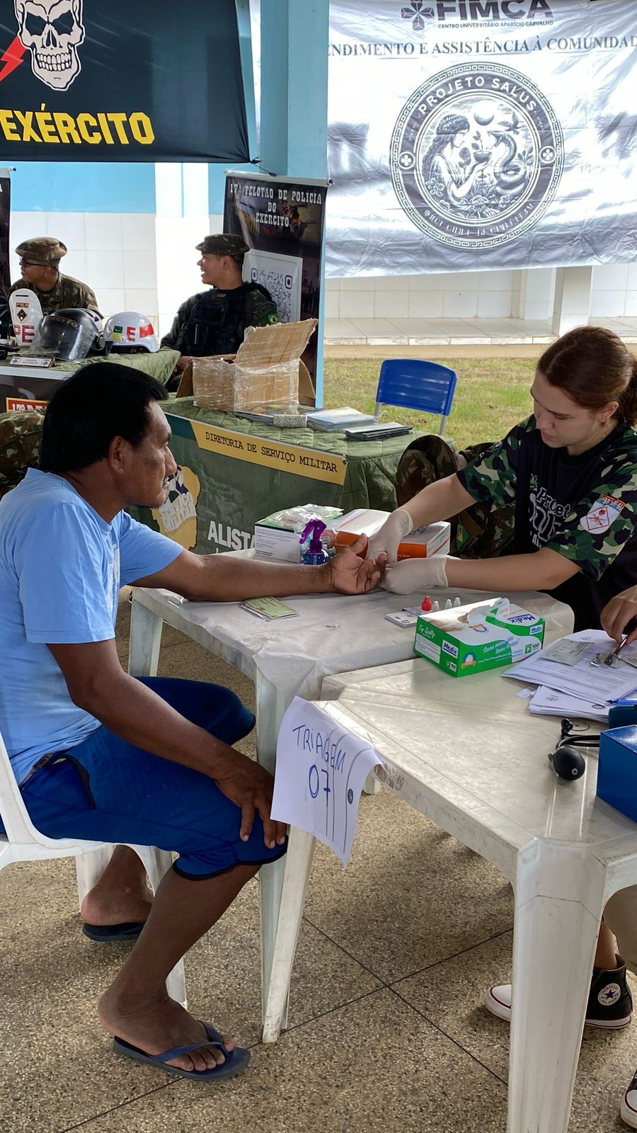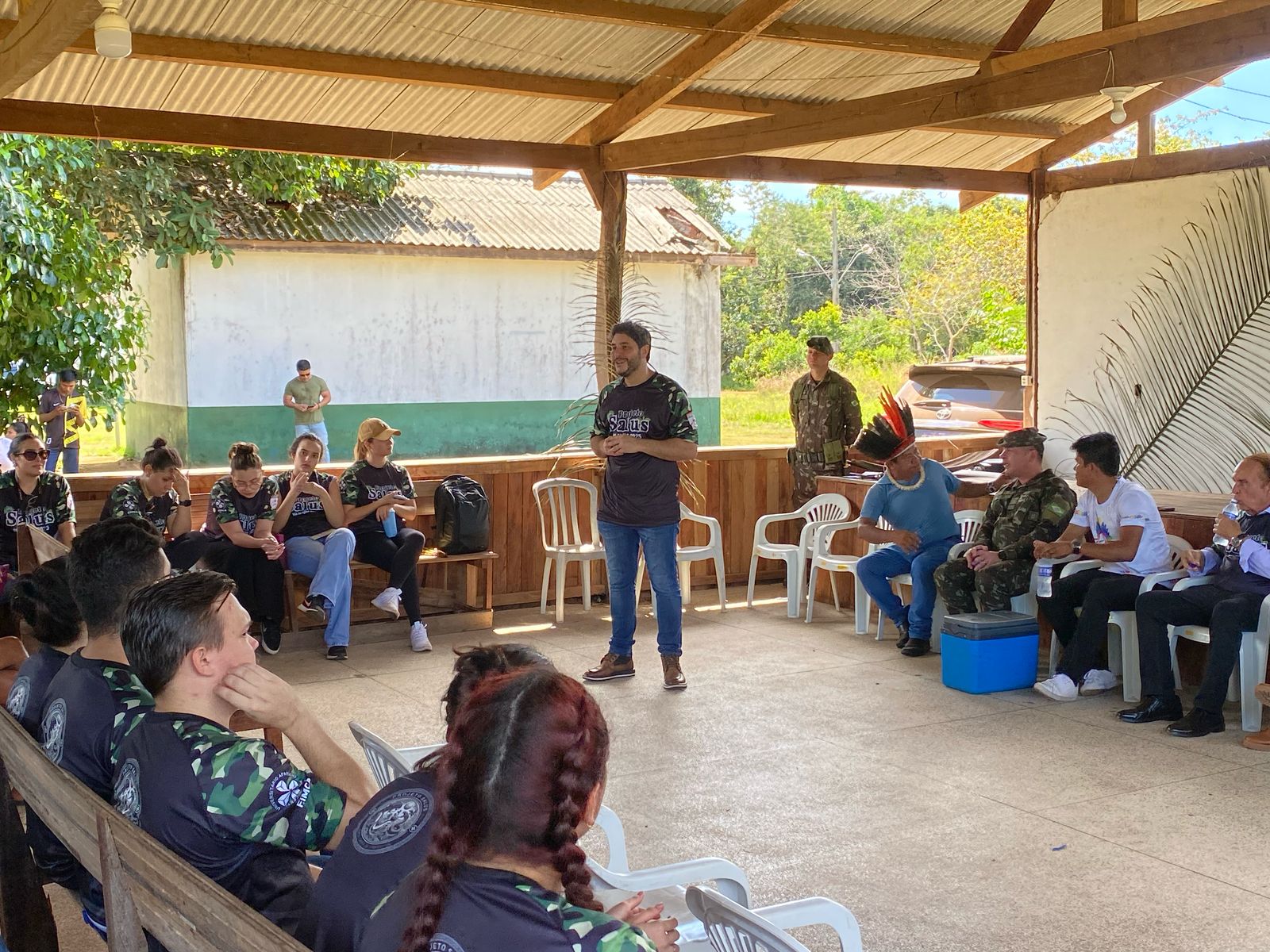 Na manhã desta segunda-feira, 26 de maio, teve início a segunda edição do Projeto Salus na Aldeia, promovido pelo Centro Universitário Aparício Carvalho – FIMCA, em parceria com a 17ª Brigada de Infantaria de Selva do Exército Brasileiro e o Distrito Sanitário Especial Indígena (DSEI) de Rondônia. A ação levou serviços de saúde e humanização ao povo Karitiana, fortalecendo o compromisso institucional com a inclusão e o respeito à diversidade cultural.
