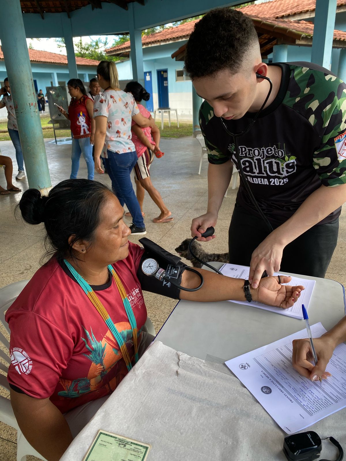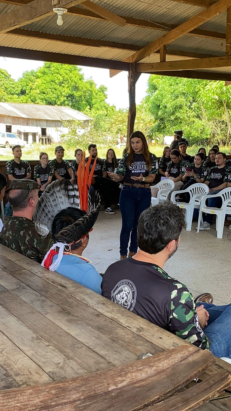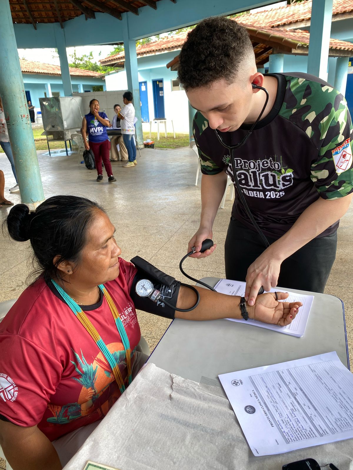 Na manhã desta segunda-feira, 26 de maio, teve início a segunda edição do Projeto Salus na Aldeia, promovido pelo Centro Universitário Aparício Carvalho – FIMCA, em parceria com a 17ª Brigada de Infantaria de Selva do Exército Brasileiro e o Distrito Sanitário Especial Indígena (DSEI) de Rondônia. A ação levou serviços de saúde e humanização ao povo Karitiana, fortalecendo o compromisso institucional com a inclusão e o respeito à diversidade cultural.