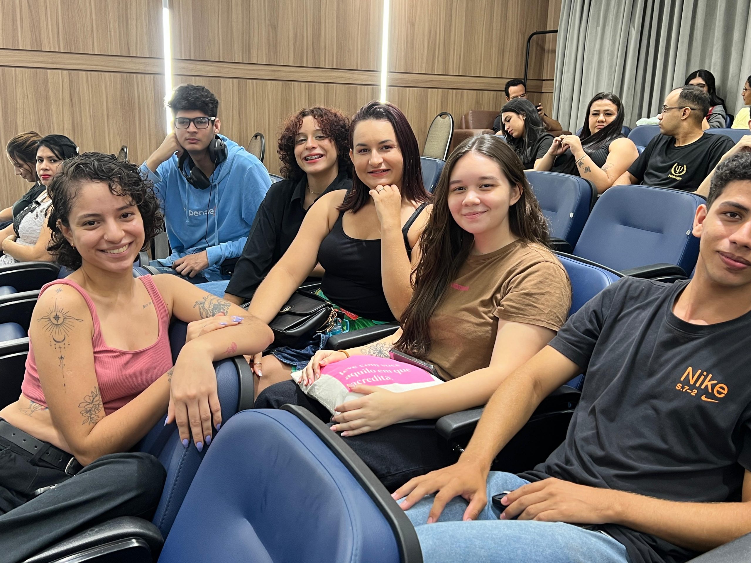 Após a exibição, membros da equipe responsável pela obra, Marcela Bonfim (Atriz), Marília Macedo (Produtora) e Neto Cavalcanti (Diretor de Fotografia), participaram de um bate-papo com os estudantes, abordando os bastidores da produção e os impactos sociais da narrativa. O debate revisitou temas relevantes para a Psicologia, como a importância da leitura, inclusão social, maternidade atípica, além de trazer a pauta racial no contexto rondoniense, promovendo uma experiência enriquecedora para os acadêmicos.