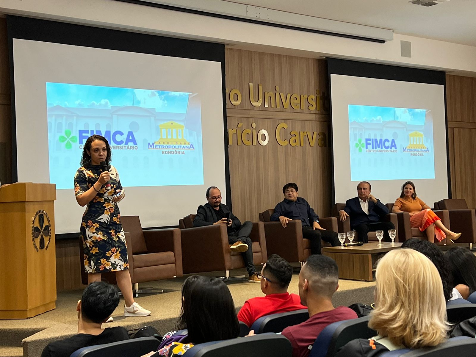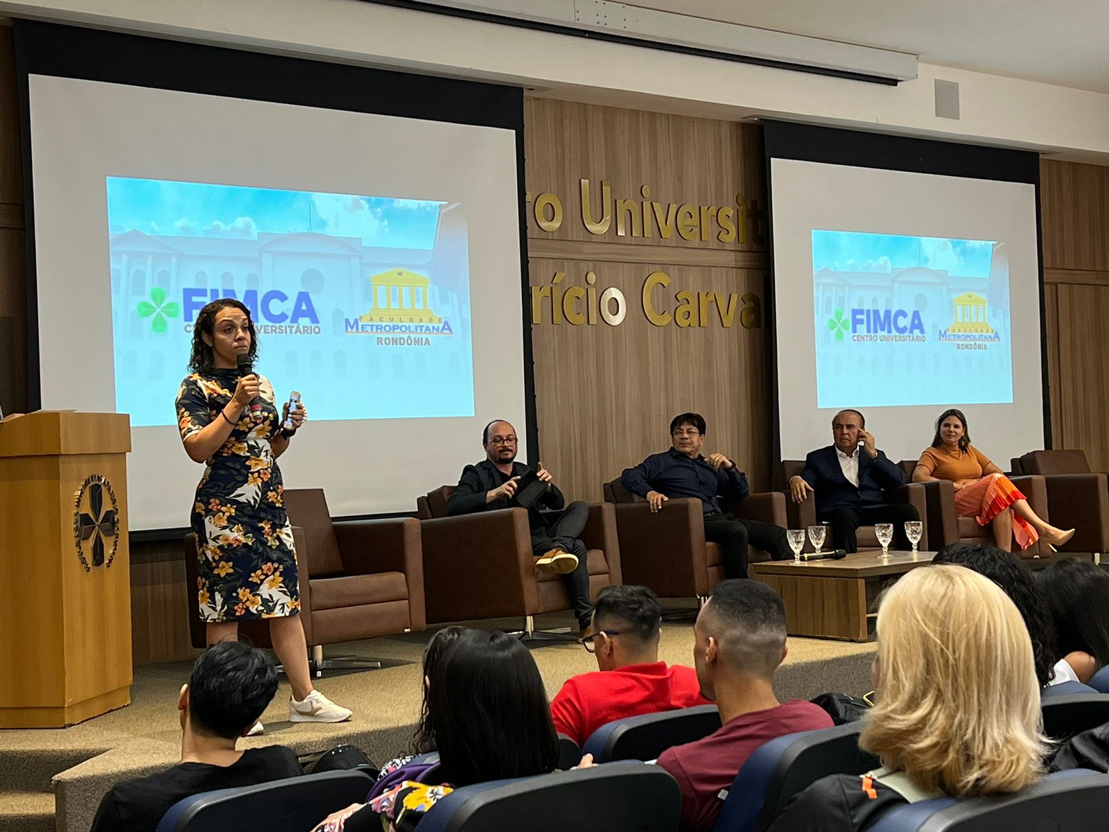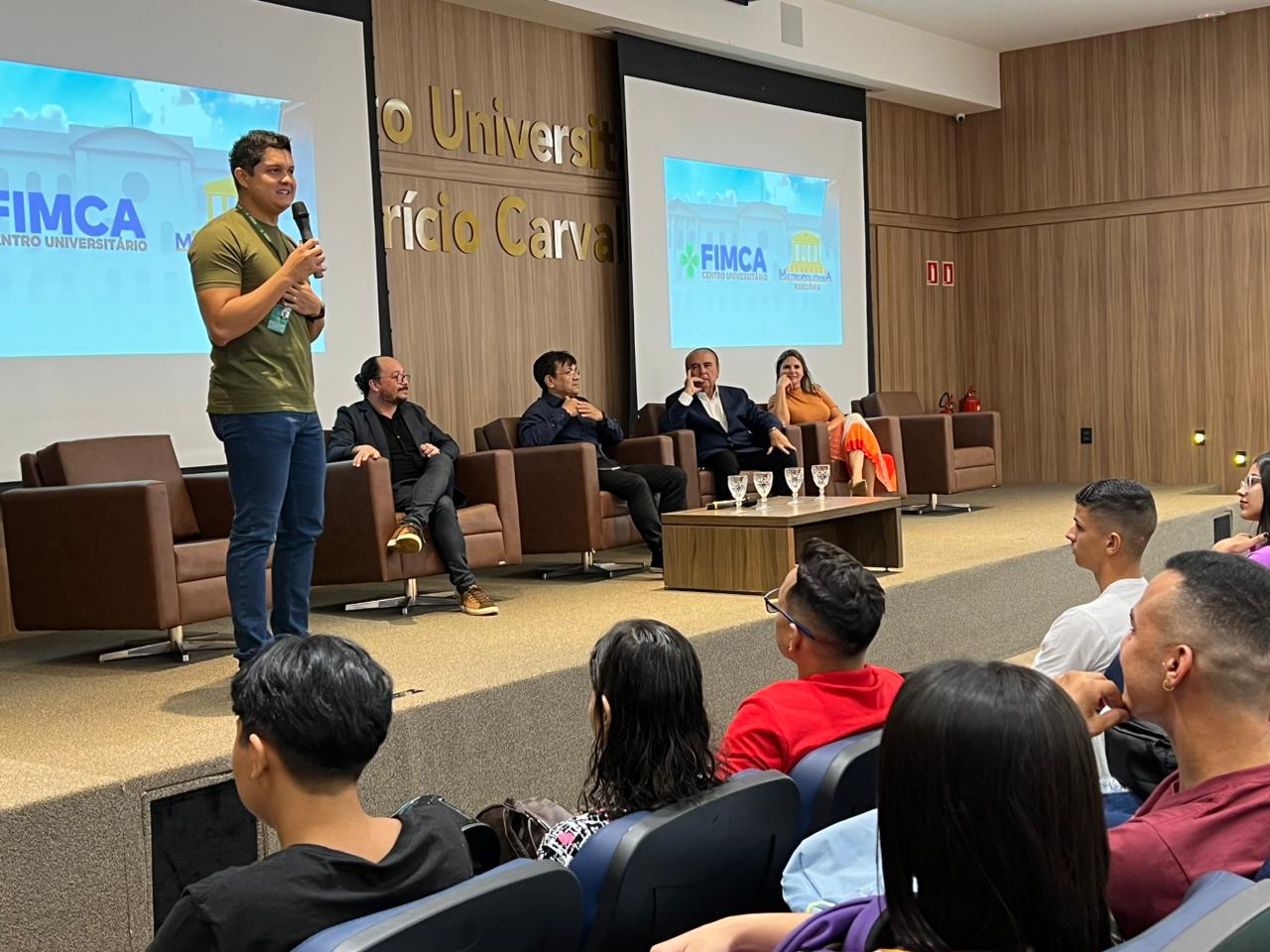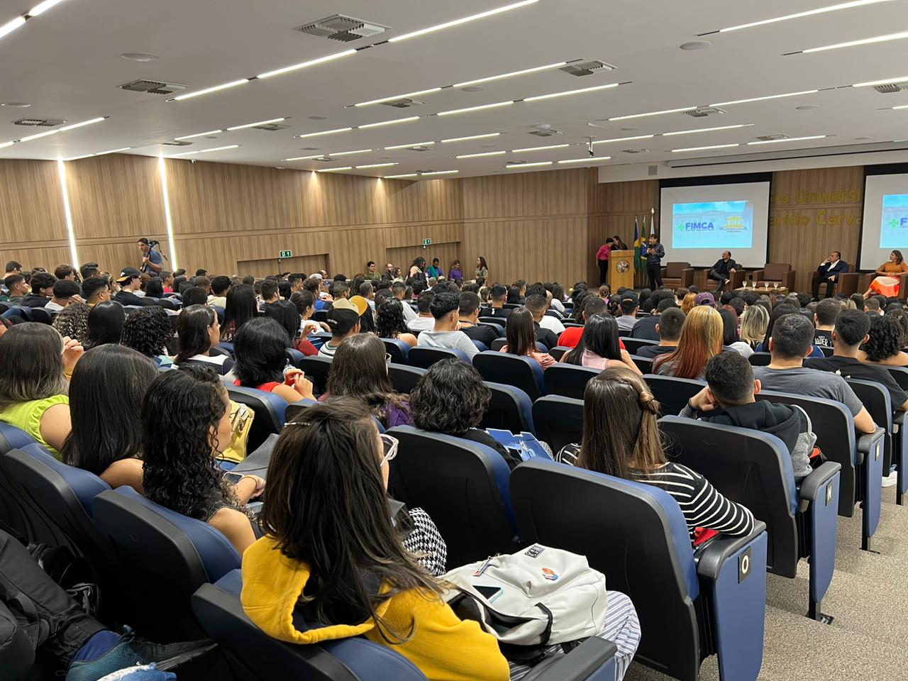 O Diretor Pedagógico Edimar Sartoro começou com a palavra, contando um pouco da história da FIMCA. Em seguida, falou o professor Luiz Ibanor, falando da qualidade dos nossos cursos e que temos os melhores professores, além da nota máxima conferida pelo MEC. A Diretora Acadêmica Dra. Nelice Batistelli expôs a importância da dedicação do acadêmico. Que de nada vai adiantar a melhor estrutura e os melhores docentes, se o aluno não fizer sua parte. A Dra. Maria Silvia relembrou o início da instituição, em 1998, e falou da emoção de ver o quanto cresceu. O Dr. Aparício Carvalho deu as boas-vindas aos calouros, ressaltando que terão a melhor estrutura, os melhores professores, e uma instituição empenhada em oferecer o melhor aos novos acadêmicos.