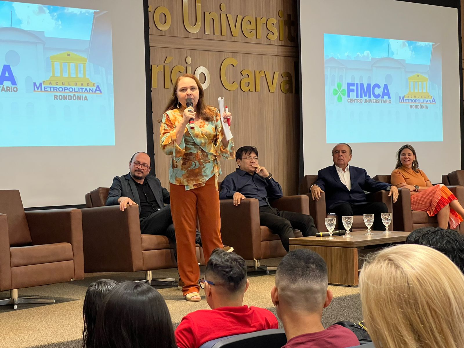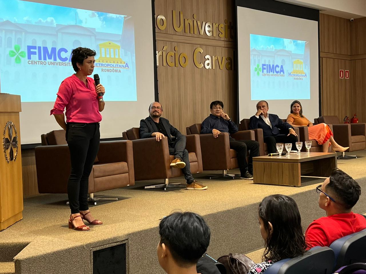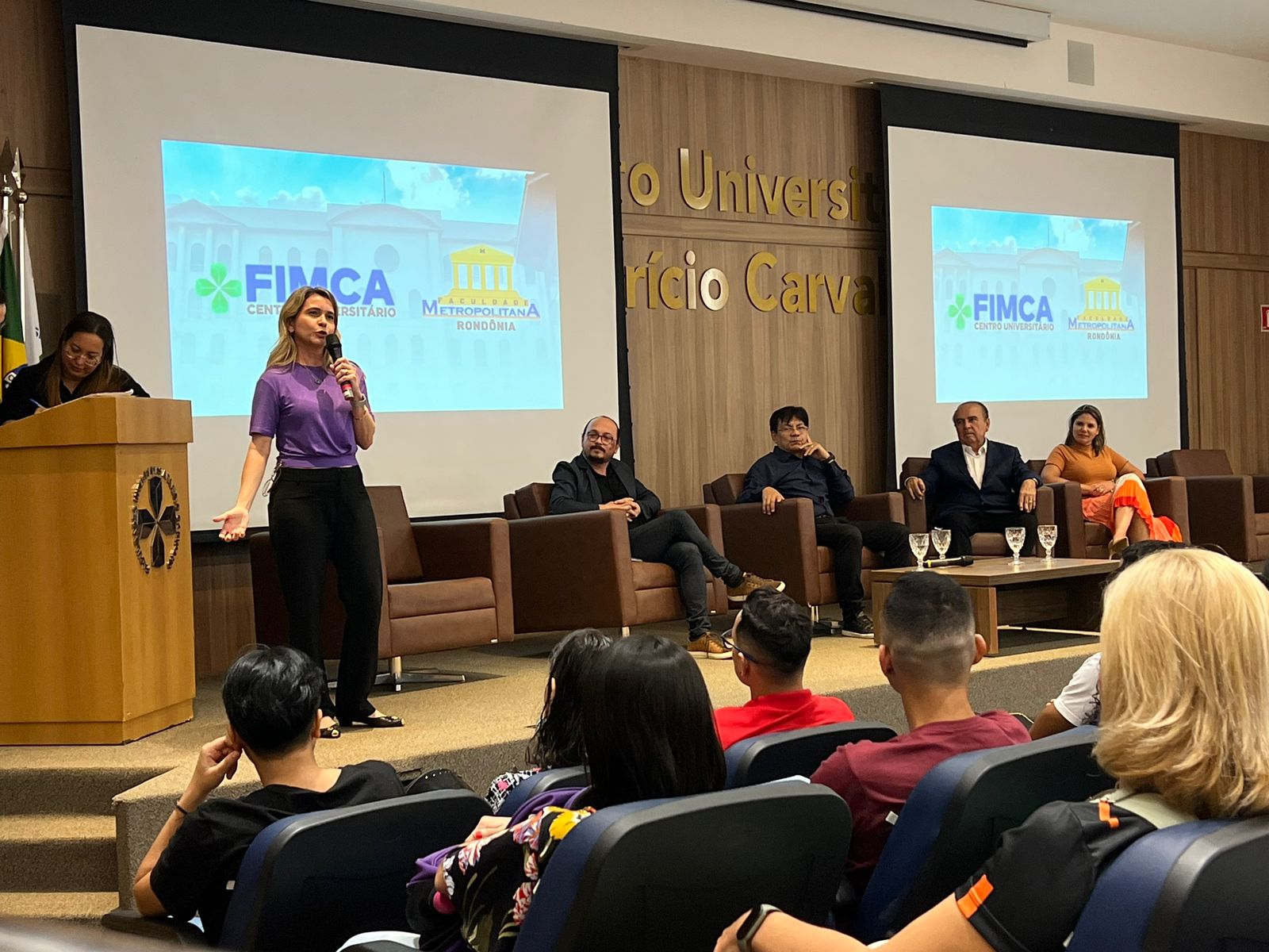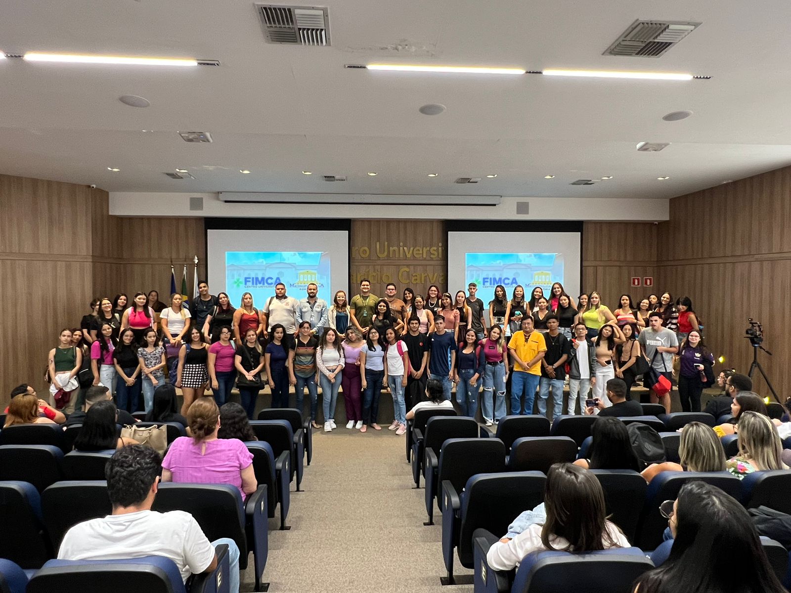 O Diretor Pedagógico Edimar Sartoro começou com a palavra, contando um pouco da história da FIMCA. Em seguida, falou o professor Luiz Ibanor, falando da qualidade dos nossos cursos e que temos os melhores professores, além da nota máxima conferida pelo MEC. A Diretora Acadêmica Dra. Nelice Batistelli expôs a importância da dedicação do acadêmico. Que de nada vai adiantar a melhor estrutura e os melhores docentes, se o aluno não fizer sua parte. A Dra. Maria Silvia relembrou o início da instituição, em 1998, e falou da emoção de ver o quanto cresceu. O Dr. Aparício Carvalho deu as boas-vindas aos calouros, ressaltando que terão a melhor estrutura, os melhores professores, e uma instituição empenhada em oferecer o melhor aos novos acadêmicos.