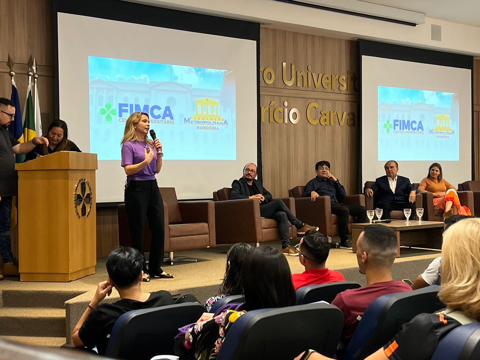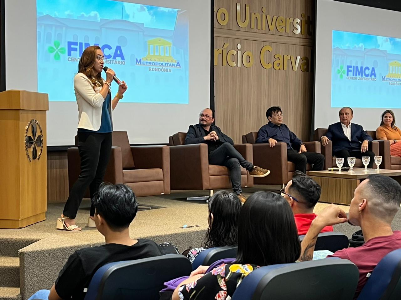 Nesta segunda (6), aconteceu a recepção dos calouros do Centro Universitário Aparício Carvalho – FIMCA e da Faculdade Metropolitana. O evento contou com a participação do magnífico Reitor, Dr. Aparício Carvalho de Moraes; da Diretora Acadêmica, Dra. Nelice Batistelli; do Coordenador Pedagógico, Edimar Sartoro; e do Assessor da Reitoria, Luiz Ibanor. O encontro foi realizado no anfiteatro Dra. Maria Silvia Carvalho, e contou também a participação dos coordenadores dos cursos oferecidos pelo Grupo Educacional.