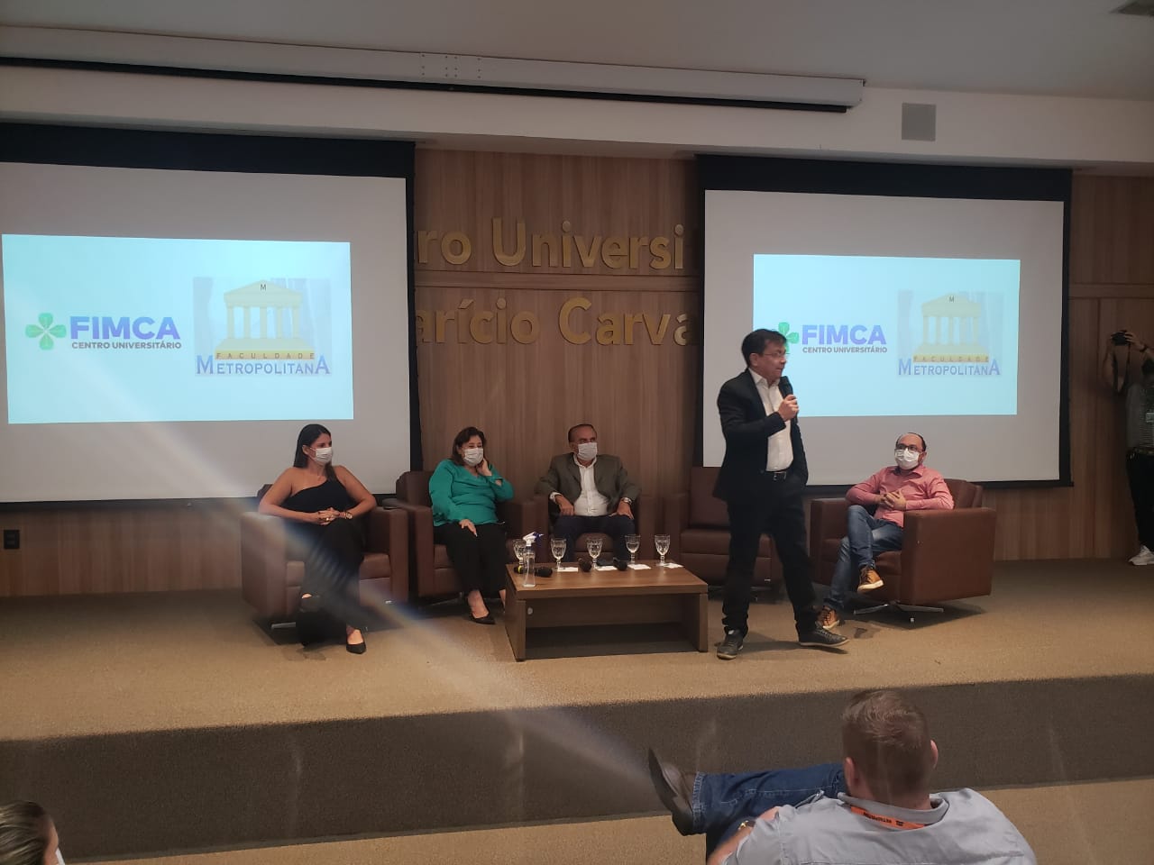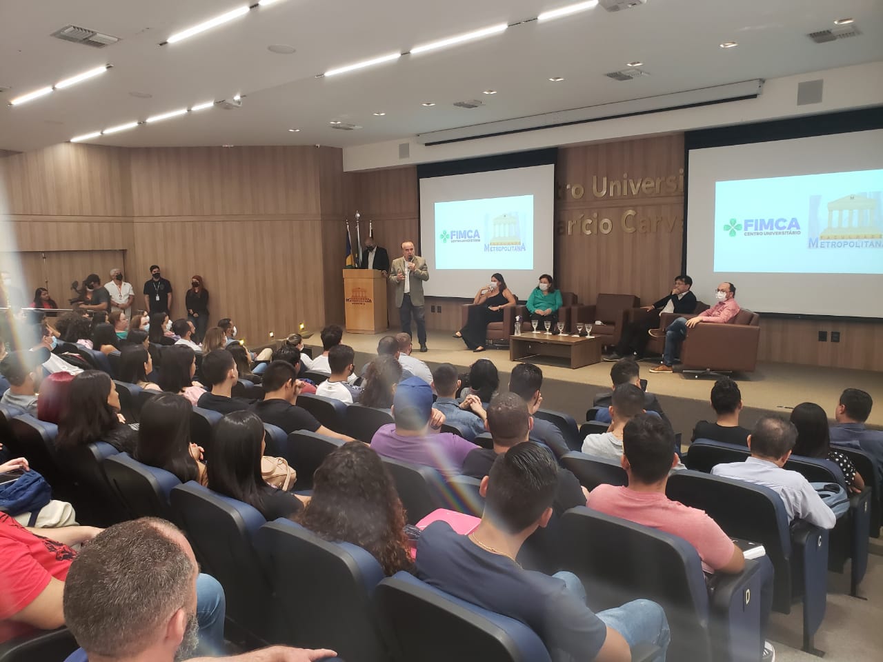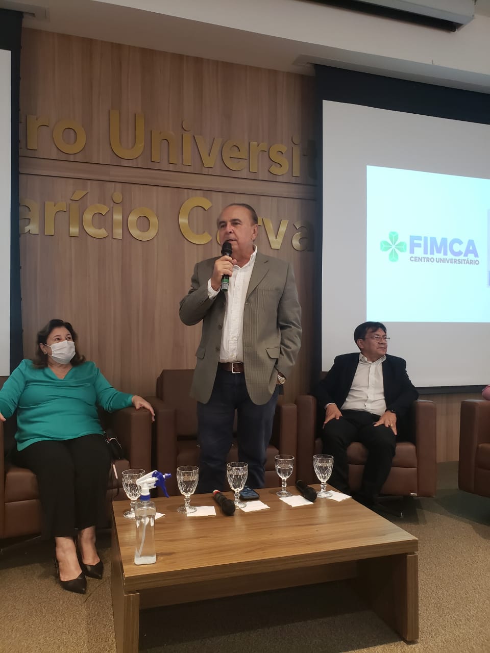 O Diretor Pedagógico Edimar Sartoro começou com a palavra, contando um pouco da história da FIMCA. Em seguida, falou o professor Luiz Ibanor, falando da qualidade dos nossos cursos e que temos os melhores professores, além da nota máxima conferida pelo MEC. A Diretora Acadêmica Dra. Nelice Batistelli expôs a importância da dedicação do acadêmico. Que de nada vai adiantar a melhor estrutura e os melhores docentes, se o aluno não fizer sua parte. A Dra. Maria Silvia relembrou o início da instituição, em 1998, e falou da emoção de ver o quanto cresceu. O Dr. Aparício Carvalho deu as boas-vindas aos calouros, ressaltando que terão a melhor estrutura, os melhores professores, e uma instituição empenhada em oferecer o melhor aos novos acadêmicos.