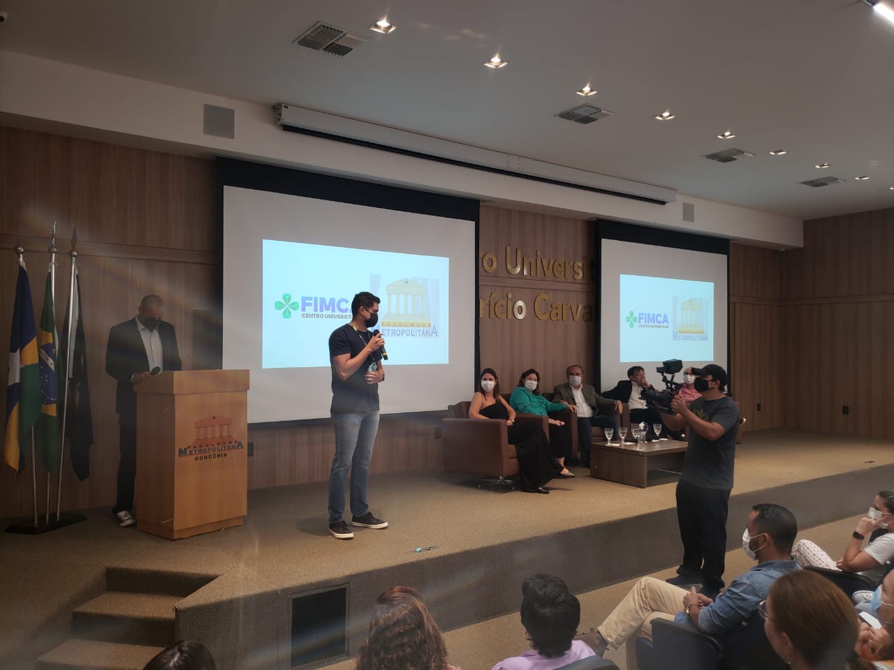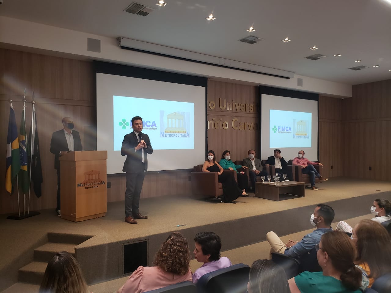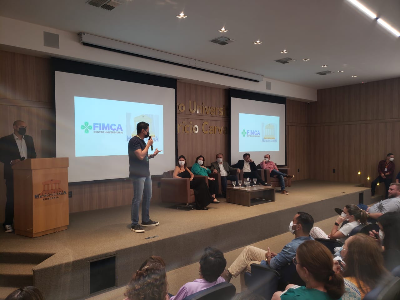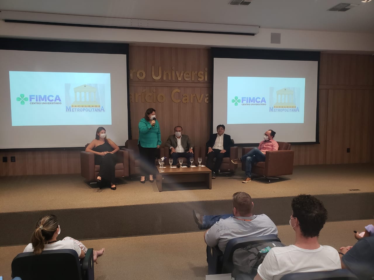 O Diretor Pedagógico Edimar Sartoro começou com a palavra, contando um pouco da história da FIMCA. Em seguida, falou o professor Luiz Ibanor, falando da qualidade dos nossos cursos e que temos os melhores professores, além da nota máxima conferida pelo MEC. A Diretora Acadêmica Dra. Nelice Batistelli expôs a importância da dedicação do acadêmico. Que de nada vai adiantar a melhor estrutura e os melhores docentes, se o aluno não fizer sua parte. A Dra. Maria Silvia relembrou o início da instituição, em 1998, e falou da emoção de ver o quanto cresceu. O Dr. Aparício Carvalho deu as boas-vindas aos calouros, ressaltando que terão a melhor estrutura, os melhores professores, e uma instituição empenhada em oferecer o melhor aos novos acadêmicos.