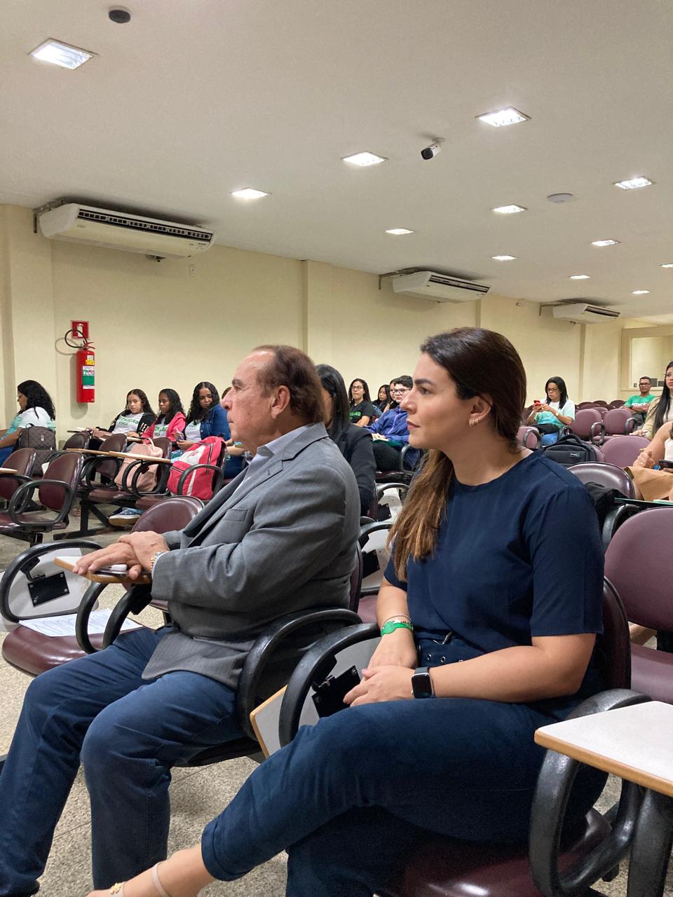 O Reitor Emérito Dr. Aparício Carvalho também se fez presente no evento e parabenizou os alunos e mestres ali presentes: “O nosso propósito é que vocês todos sejam os melhores nutricionistas do estado […]. Desejo sucesso, que vocês possam melhorar a vida de vocês, de suas famílias e de milhares de pessoas através da nutrição, parabéns à coordenadora do curso, pois quem faz o sucesso nos eventos é quem participa, e vocês fazem parte do sucesso da FIMCA e também do curso de nutrição, parabéns a todos”.