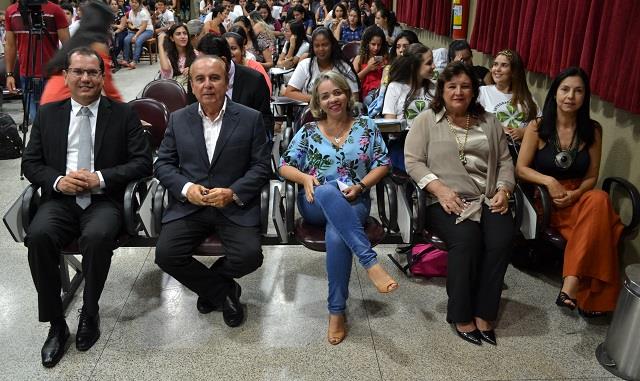 A solenidade de abertura contou com as presenças do Diretor Geral da FIMCA, Dr. Aparício Carvalho, a vice-diretora Dra. Maria Silvia, a coordenadora do curso de enfermagem, Josefa Ramos, a Profa. Catarina Vaquer, coordenadora do Núcleo de Apoio Pedagógico,