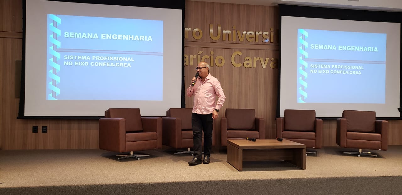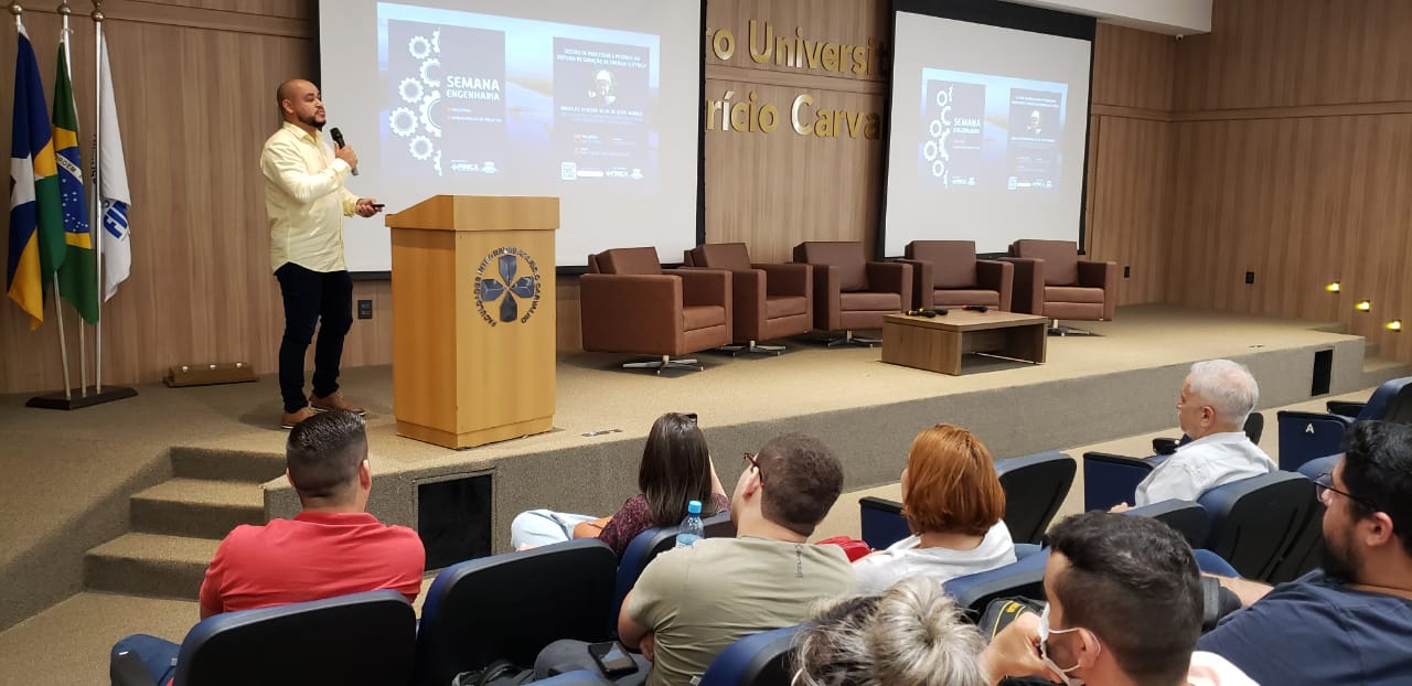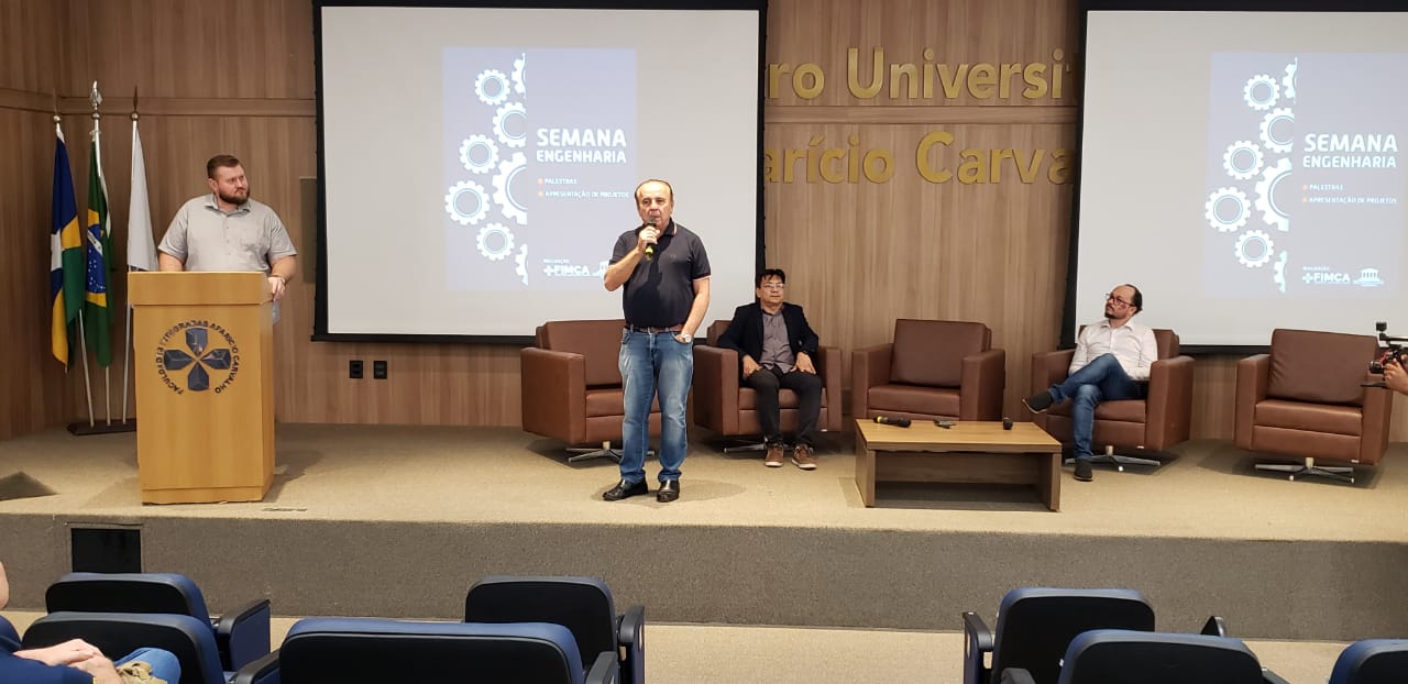 O reitor, Dr. Aparício Carvalho, discursou na abertura do evento. O professor e coordenador dos cursos de Engenharia, Leandro Kester, falou em seguida. Geraldo conversou com os acadêmicos sobre o sistema profissional no eixo Confea/Crea. Já Douglas falou sobre gestão de processos e pessoas no sistema de geração de Energia Elétrica. O professor Adeilson, da FIMCA, também deu sua contribuição.