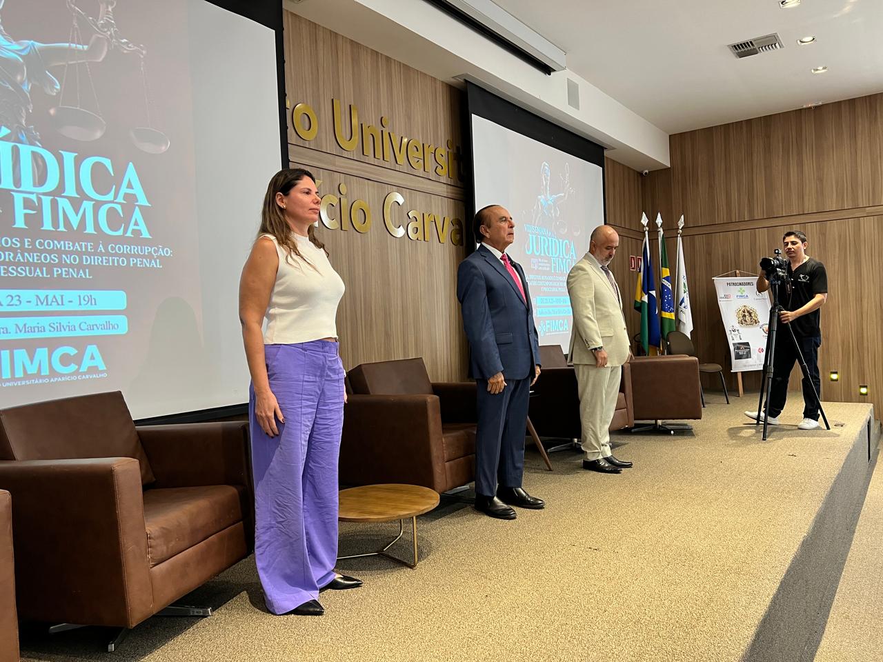 Durante a solenidade, estiveram presentes autoridades acadêmicas da FIMCA, como o Reitor Emérito, Dr. Aparício Carvalho, a Diretora Acadêmica, Dra. Nelice Batistelli, e o coordenador do curso de Direito, Prof. Cesar Jacques.